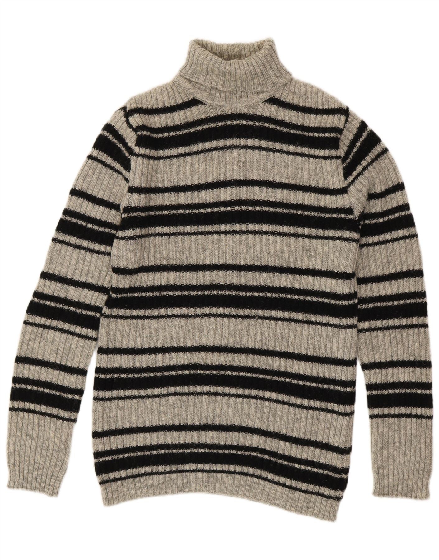 SHETLAND Suéter tipo jersey con cuello vuelto para mujer Reino Unido 16 Lana a rayas gris grande