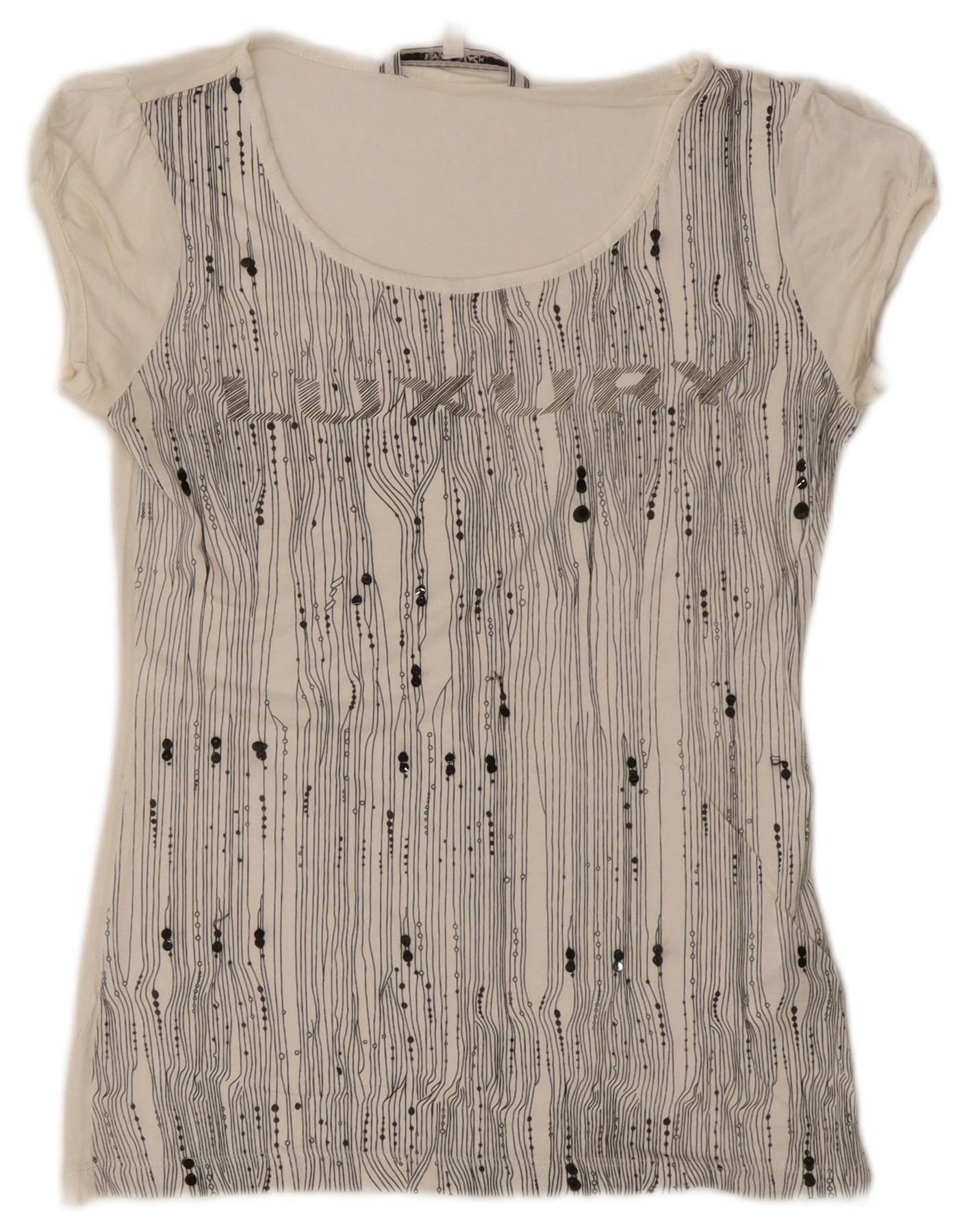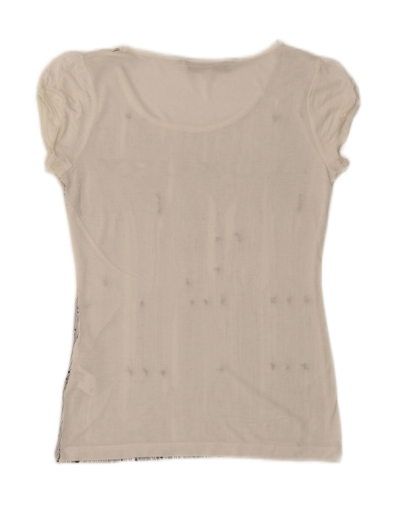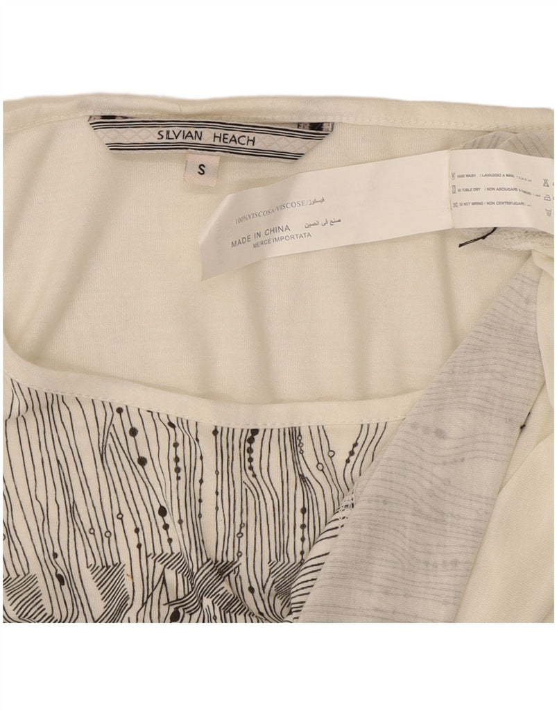 SILVIAN HEACH Camiseta gráfica para mujer Top UK 10 Small White Geométrico