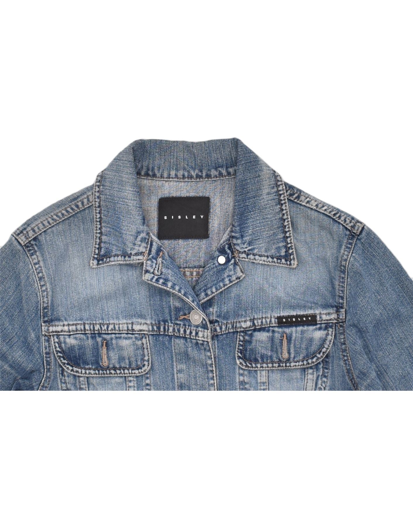 SISLEY Chaqueta vaquera para mujer UK 10 Small Blue Cotton