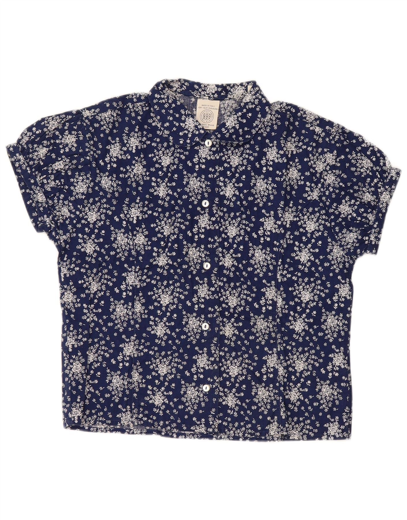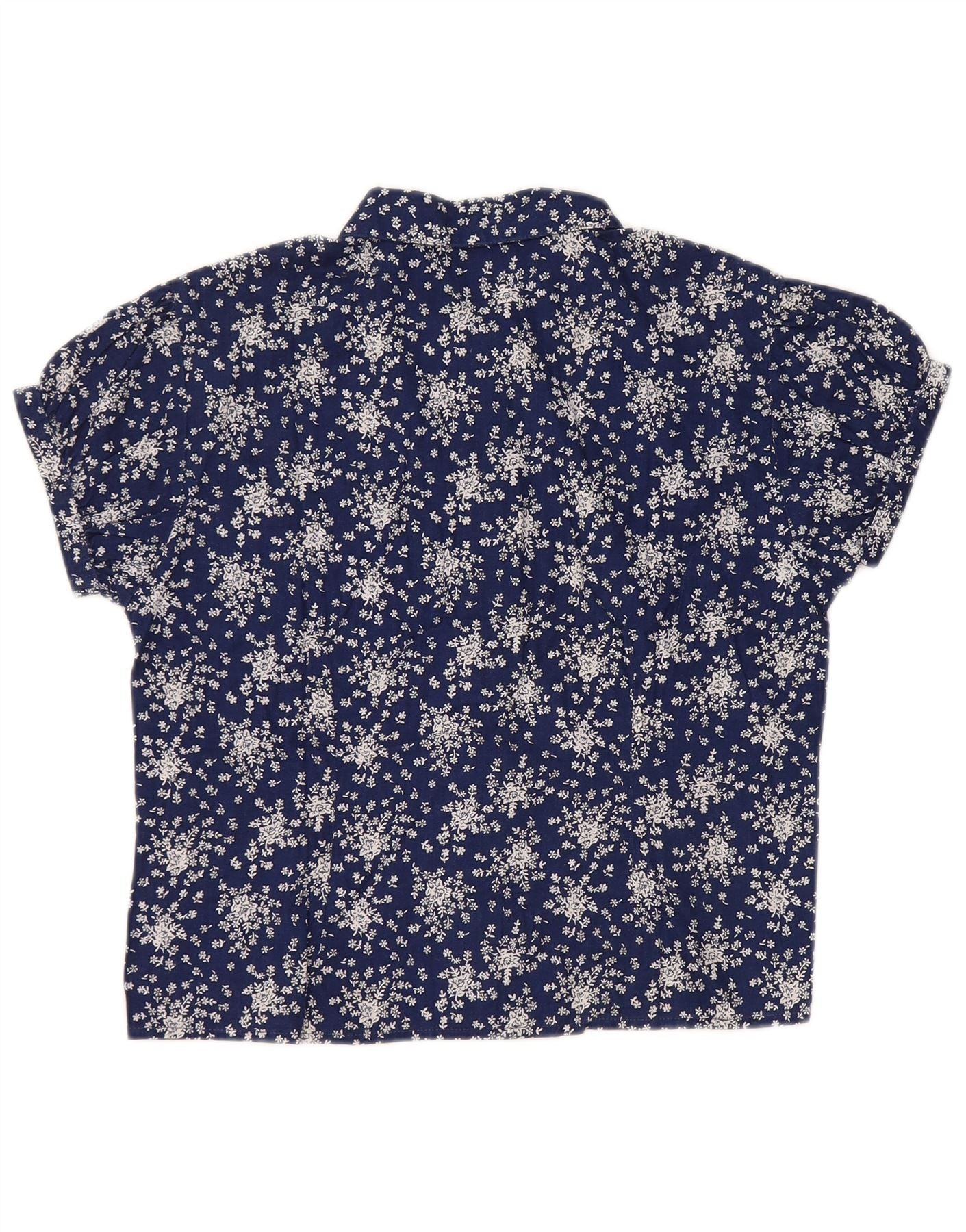 SISLEY Blusa corta de manga corta para mujer UK 44 Grande Azul marino Floral