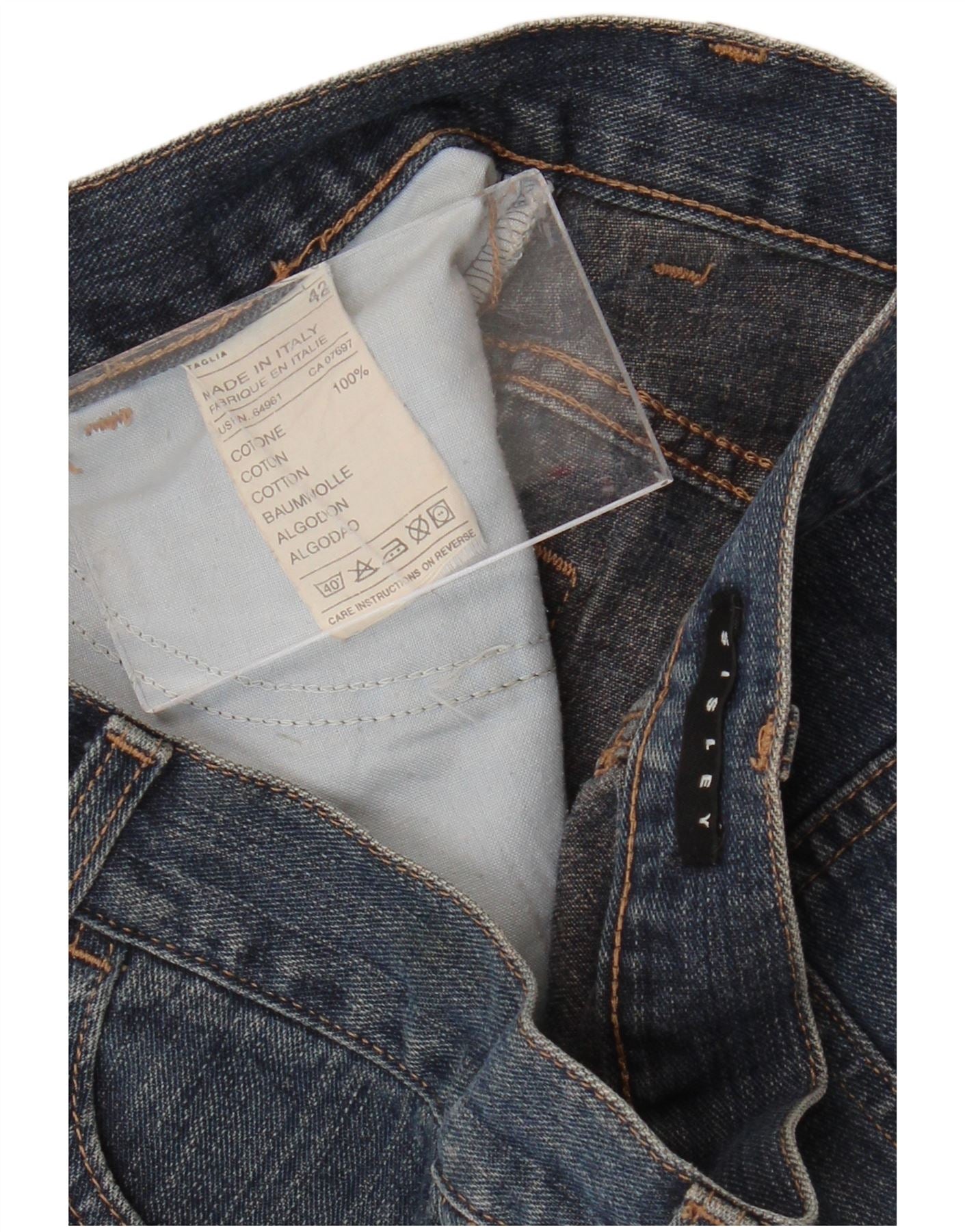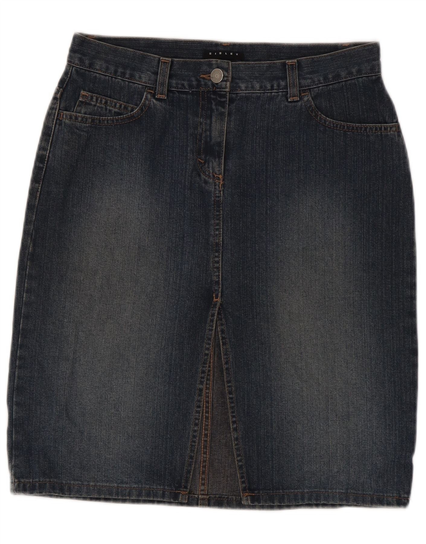 SISLEY Falda vaquera para mujer IT 42 Medium W28 Azul marino Algodón