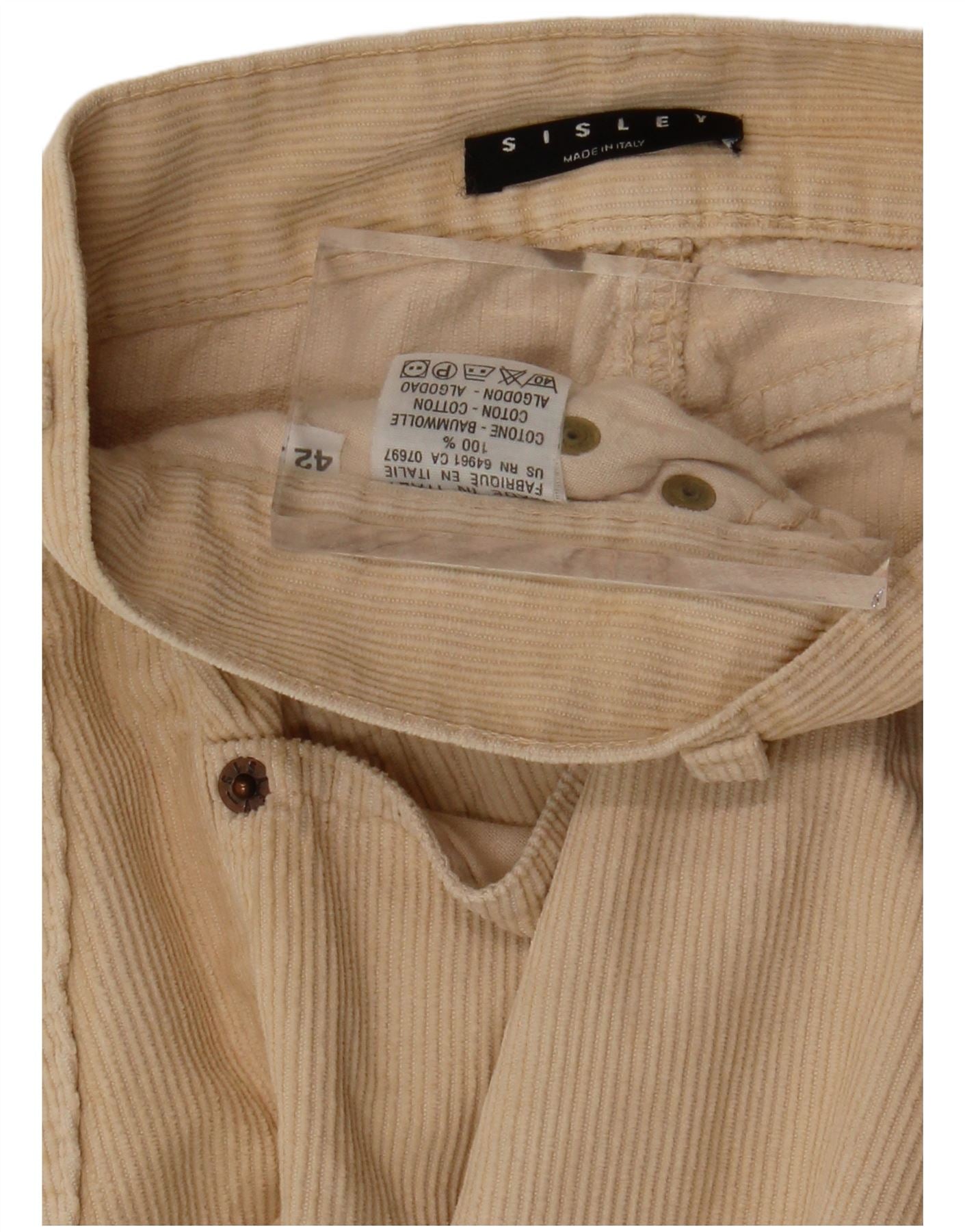 SISLEY Pantalones de pana de cintura alta para mujer IT 42 Medium W26 L27 Beige