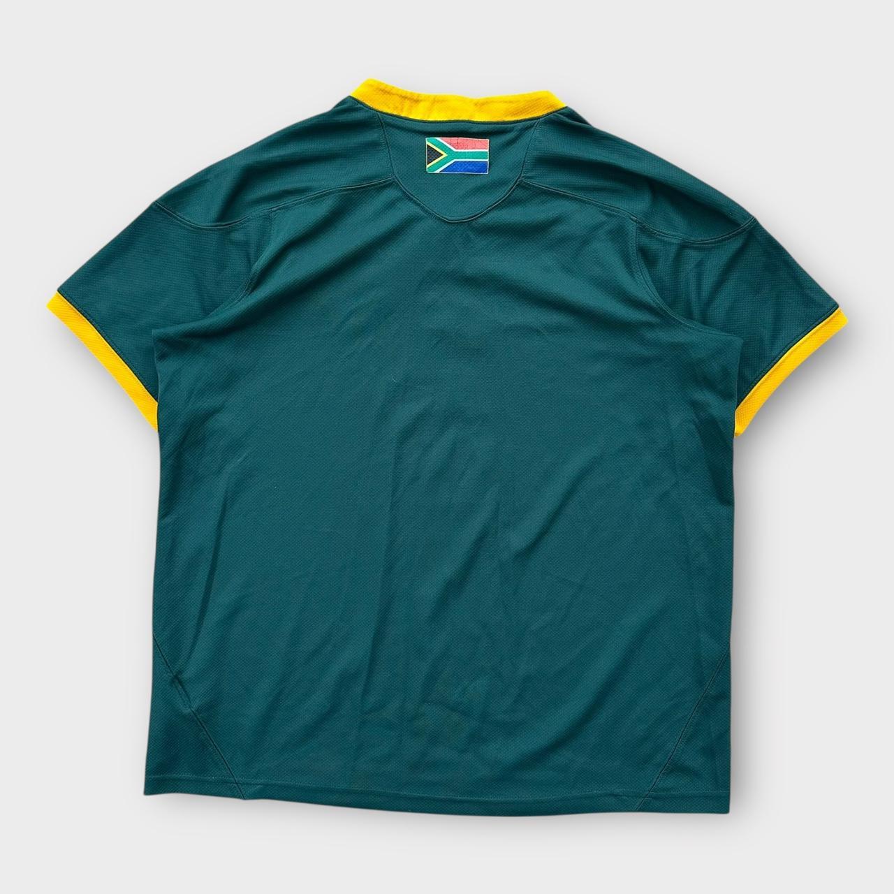 Camiseta de rugby Sudáfrica de ASICS en verde y amarillo con logos bordados y patrocinador en el pecho