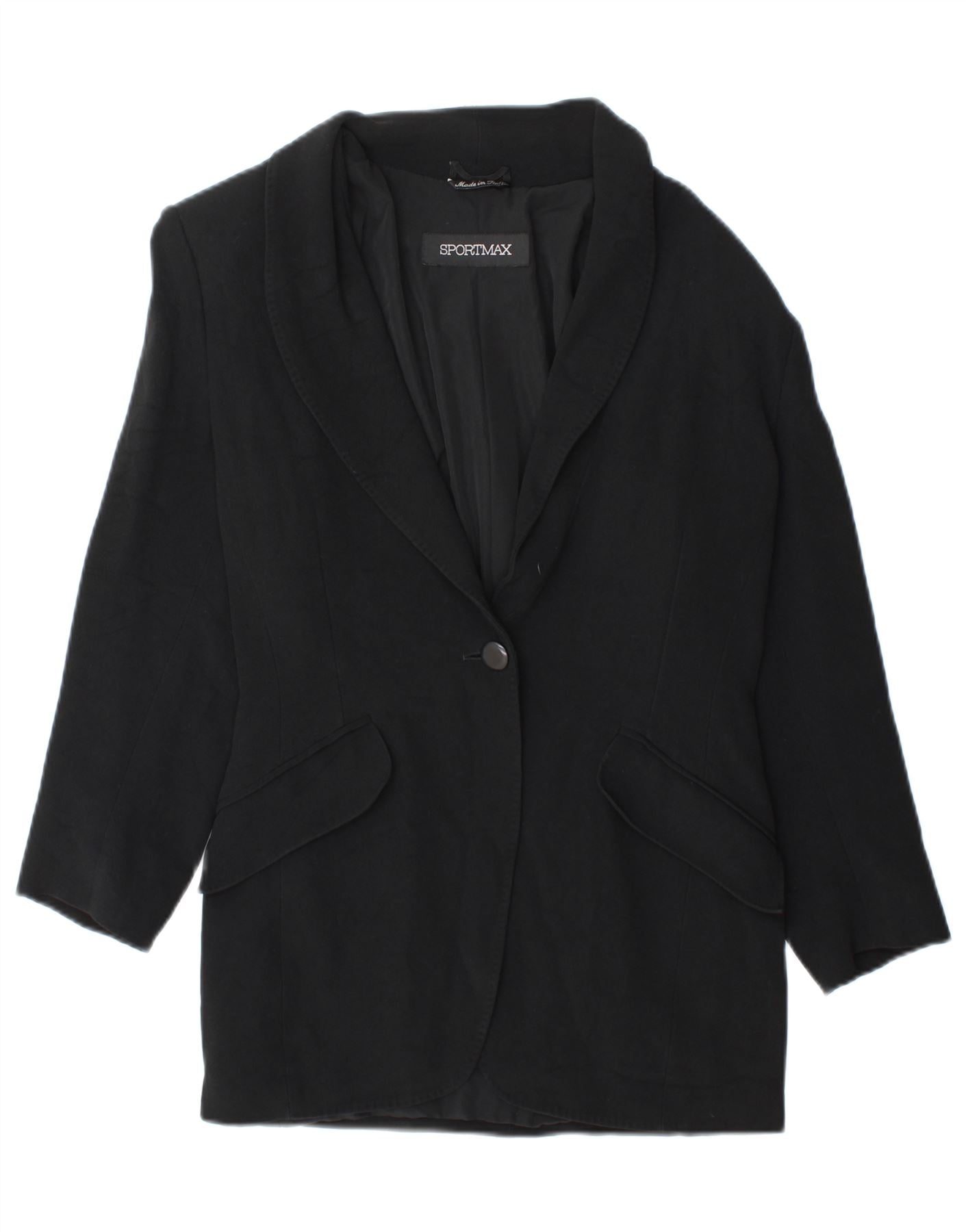 SPORTMAX Womens 1 Button 3/4 Sleeve Blazer Jacket UK 12 Medium Black