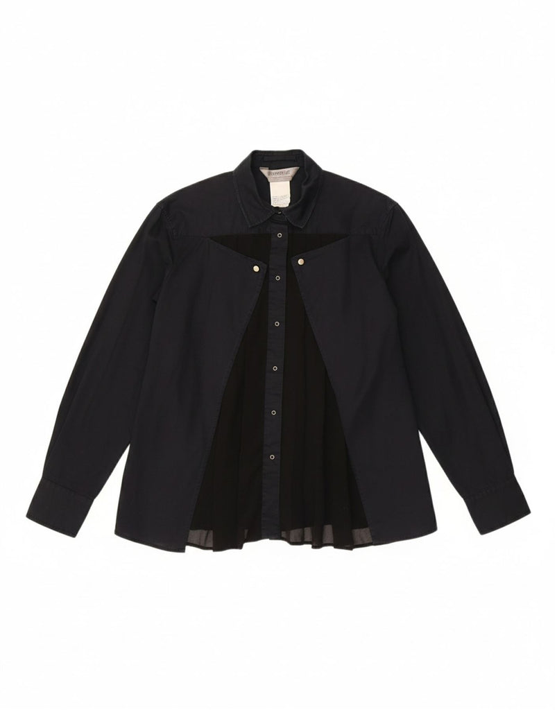 SPORTMAX Womens Oversized Shirt UK 10 Small Navy Blue Colourblock Cotton