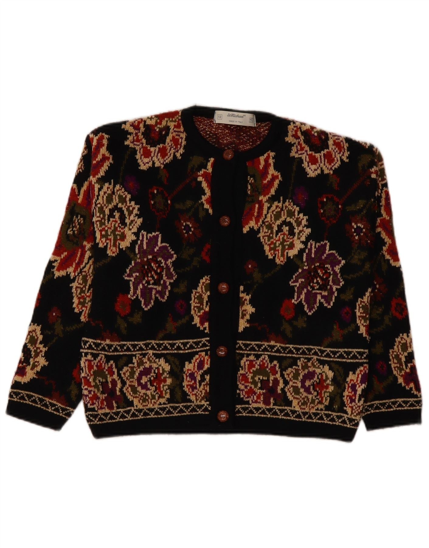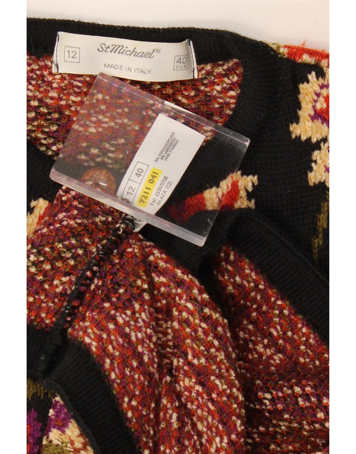 ST MICHAEL Suéter cárdigan para mujer Reino Unido 12 Acrílico floral negro mediano