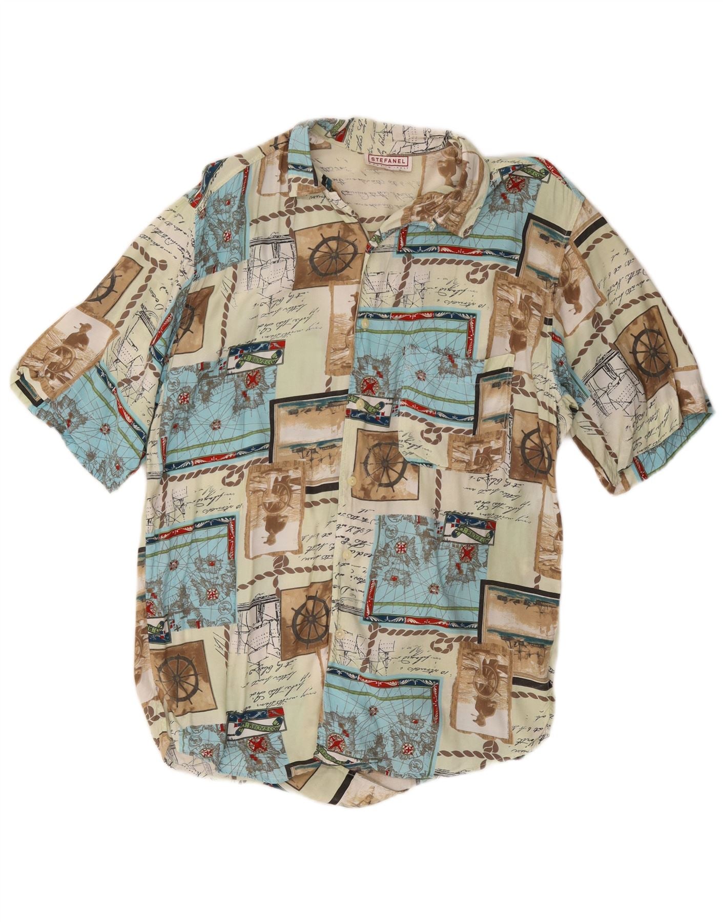 STEFANEL Camisa estampada de manga corta para hombre con patchwork multicolor pequeño