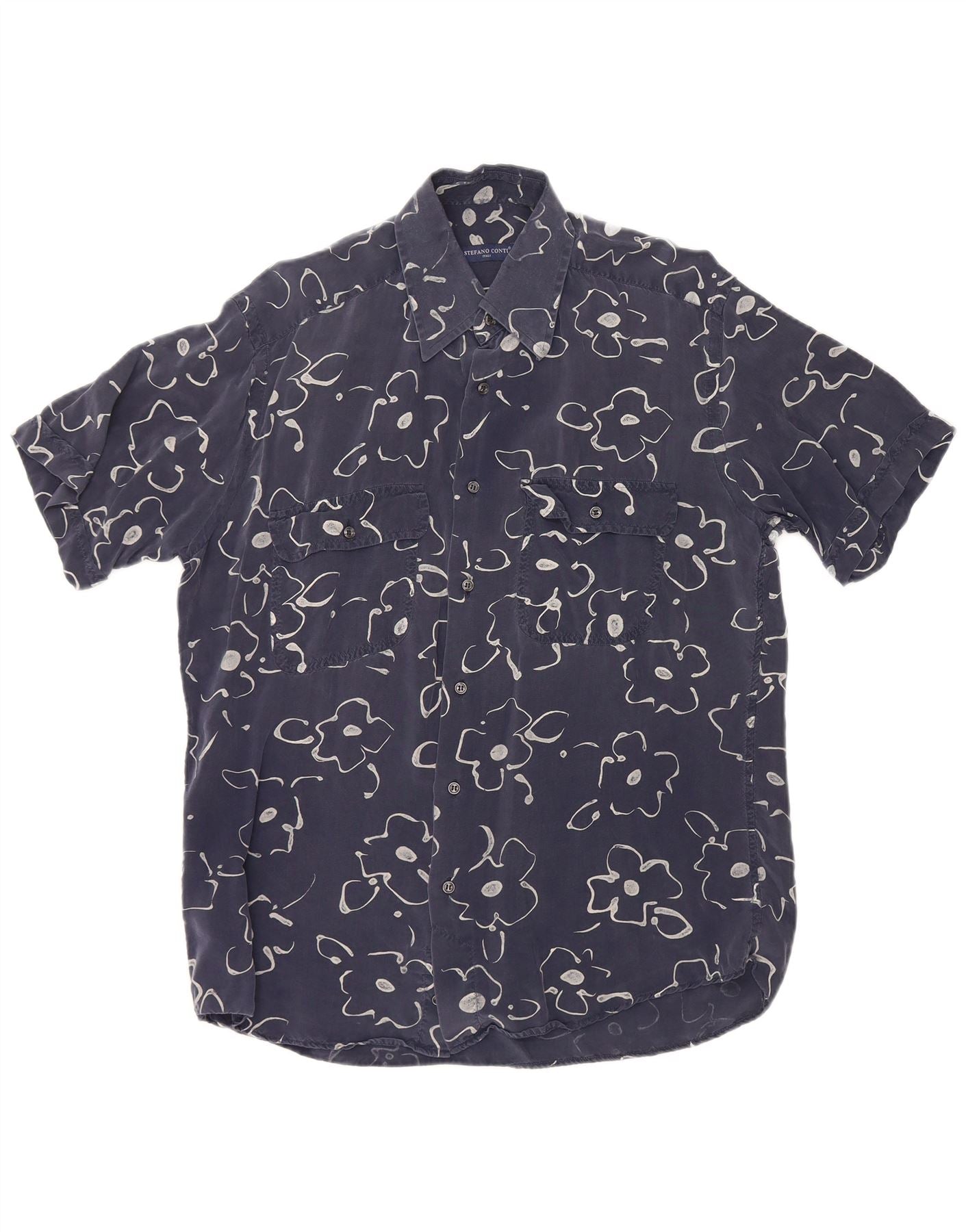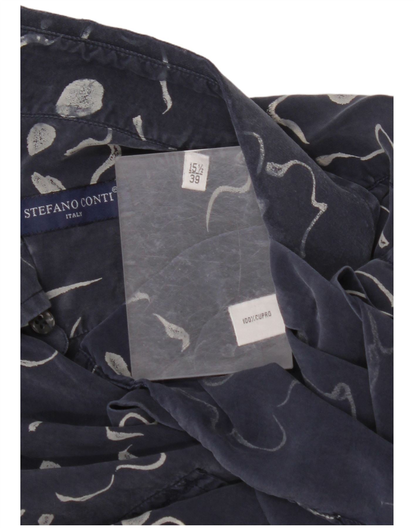 STEFANO CONTI Camisa para hombre Talla 15 1/2 39 Mediana Azul Marino Floral