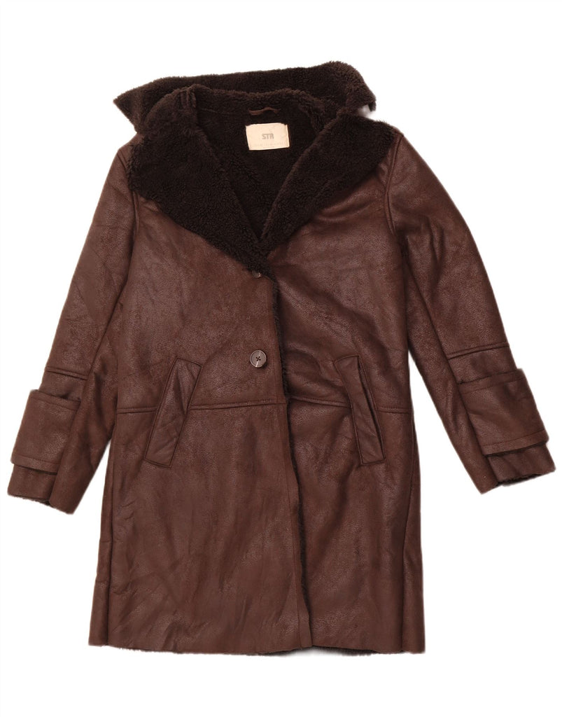 STRADIVARIUS Abrigo Sherpa extragrande para mujer UK 6 XS Marrón Poliéster