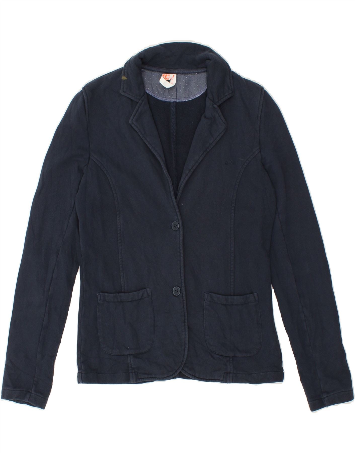 SUN68 Womens 2 Button Blazer Jacket UK 12 Medium Navy Blue Cotton | Vintage Sun68 | Thrift | Second-Hand Sun68 | Used Clothing | Messina Hembry