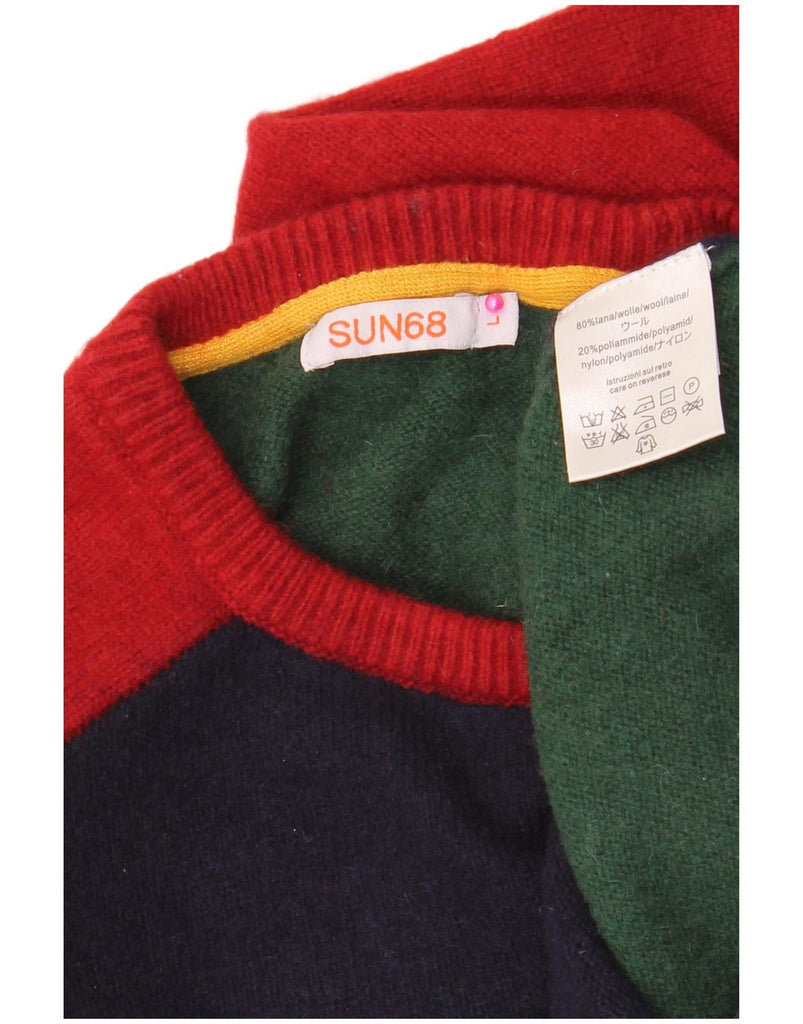 SUN68 Suéter tipo jersey con cuello redondo para mujer UK 46 Large Azul marino Colorblock