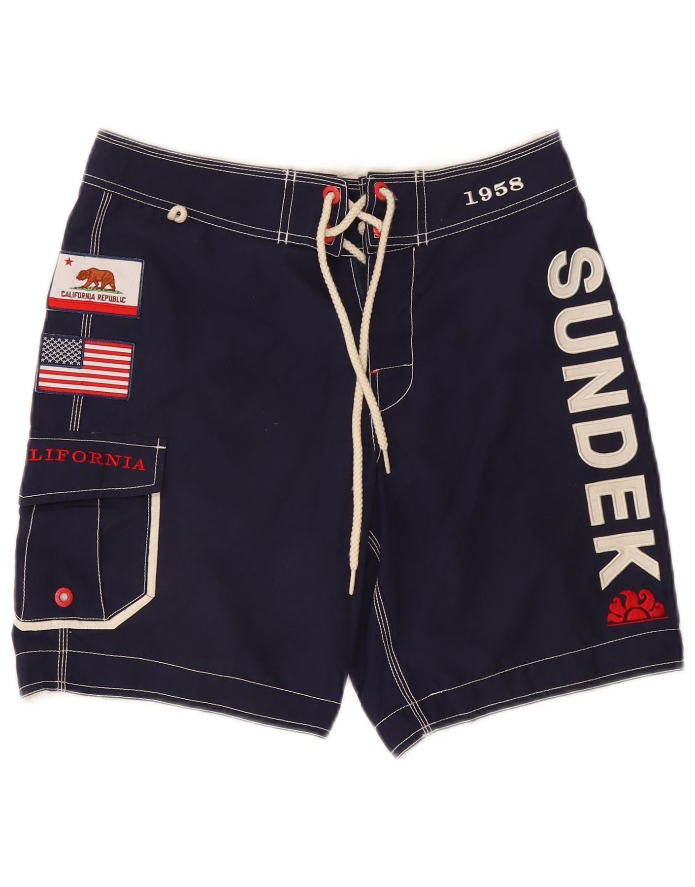 SUNDEK Bañador estampado para hombre, talla pequeña, poliéster azul marino