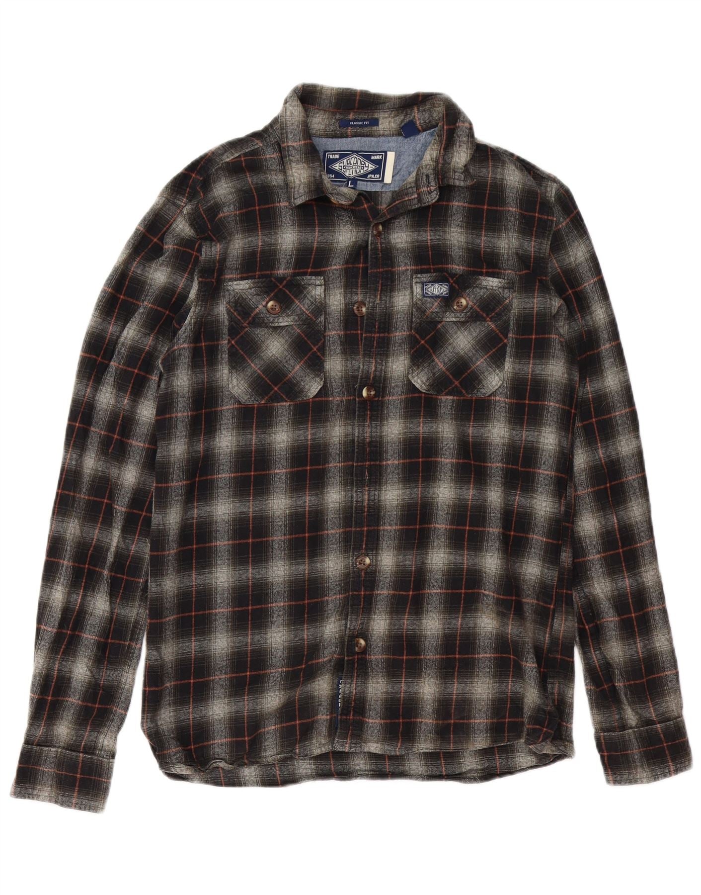 SUPERDRY Camisa de franela de corte clásico de algodón a cuadros negros grandes para hombre