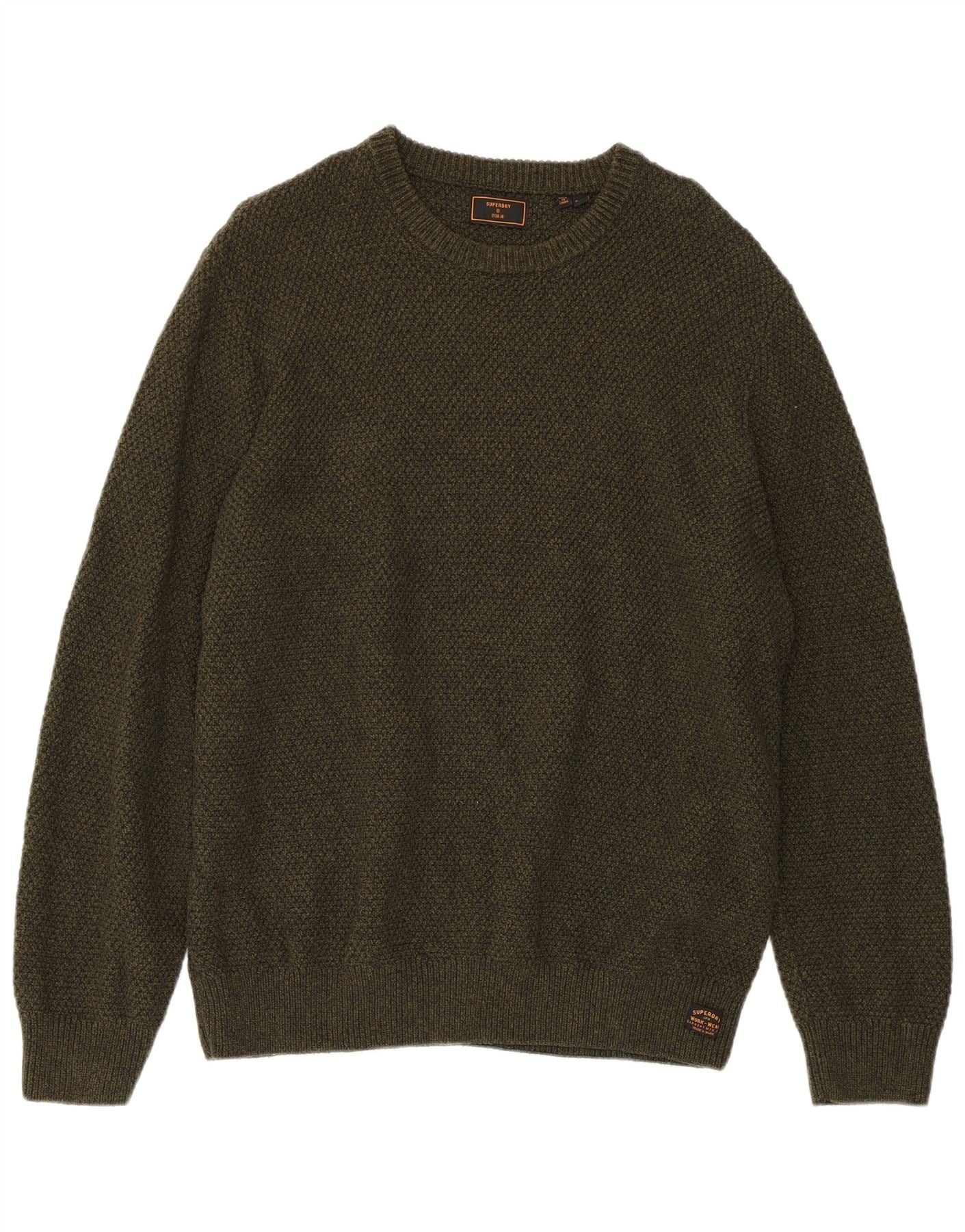 SUPERDRY Jersey de cuello redondo para hombre 2XL Algodón caqui