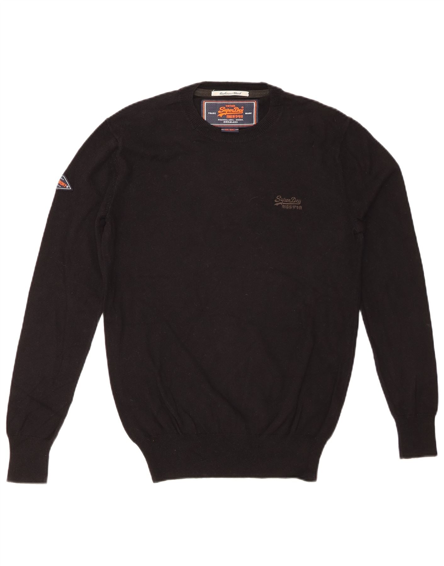 SUPERDRY Jersey de cuello redondo para hombre pequeño de algodón negro