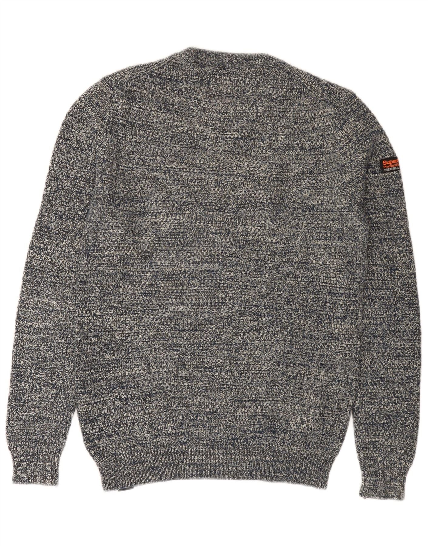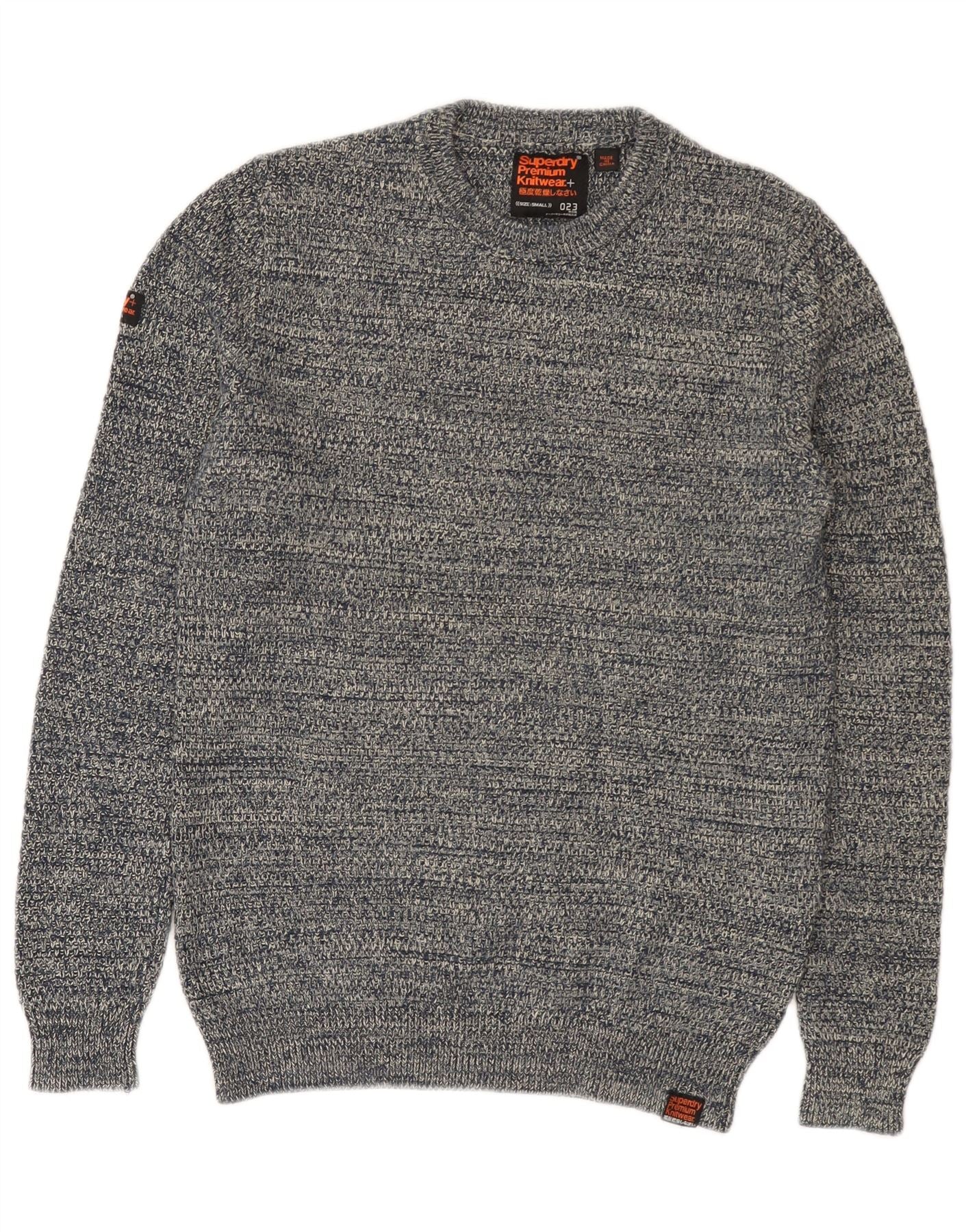 SUPERDRY Jersey de cuello redondo para hombre pequeño de algodón moteado azul marino