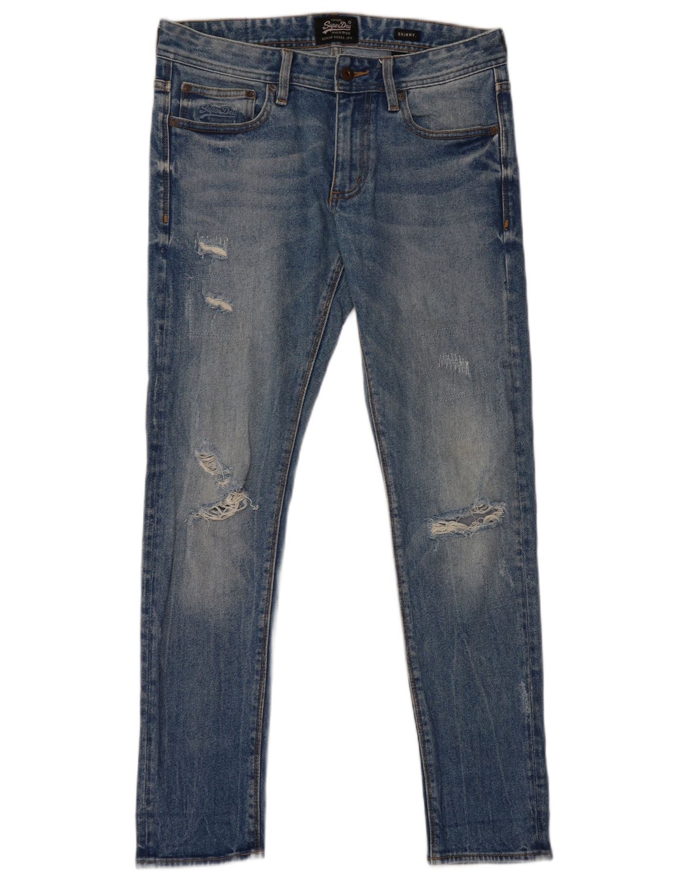 SUPERDRY Vaqueros pitillo desgastados para hombre W32 L30 Algodón azul