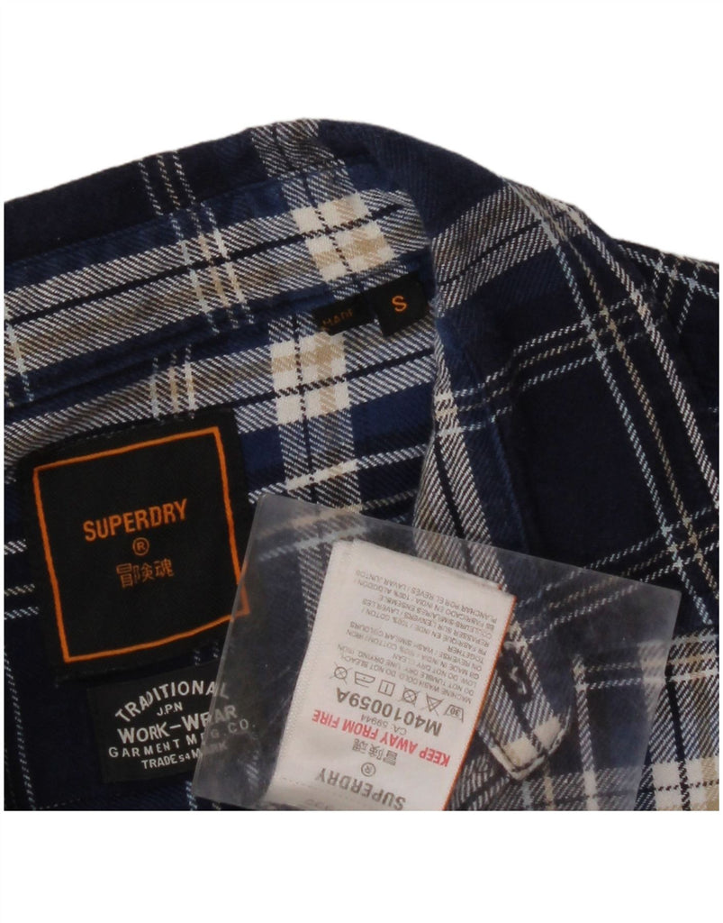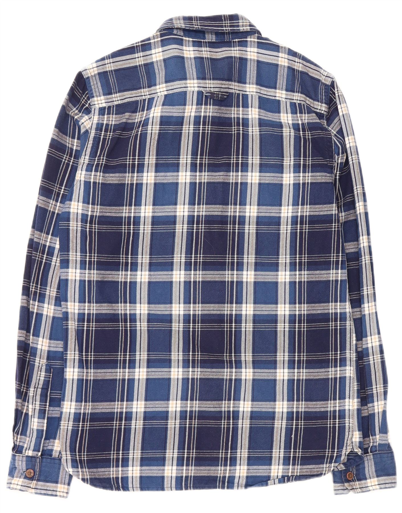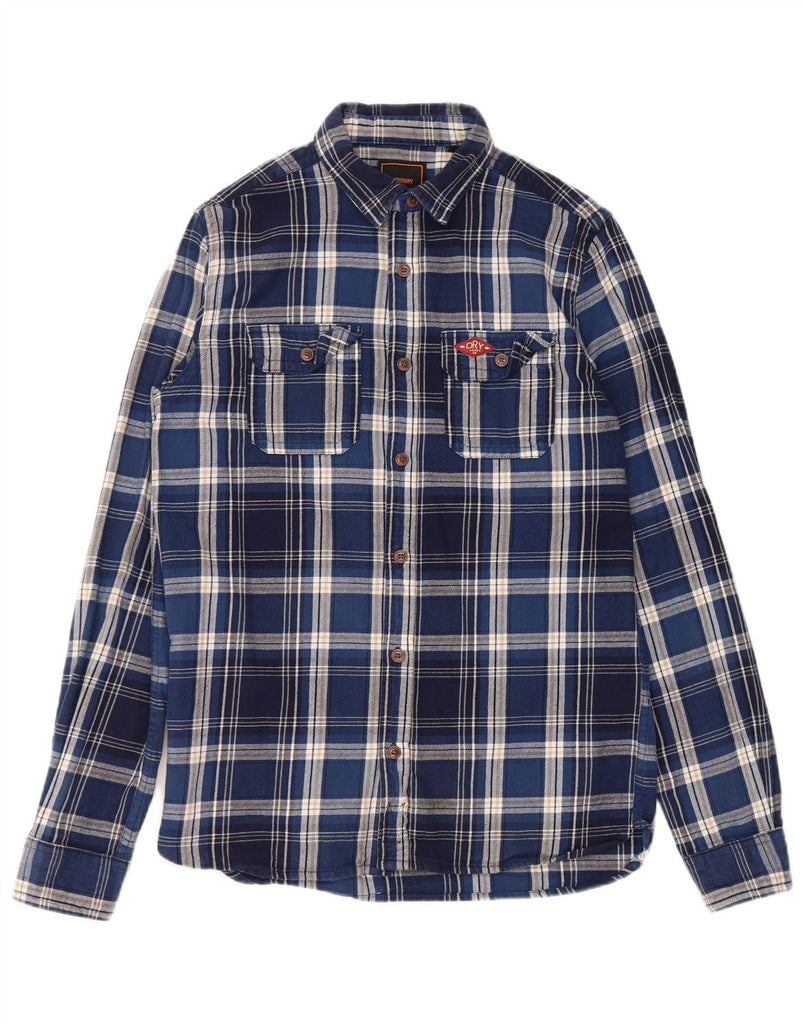SUPERDRY Hombre Camisa De Franela De Algodón A Cuadros Azul Pequeño