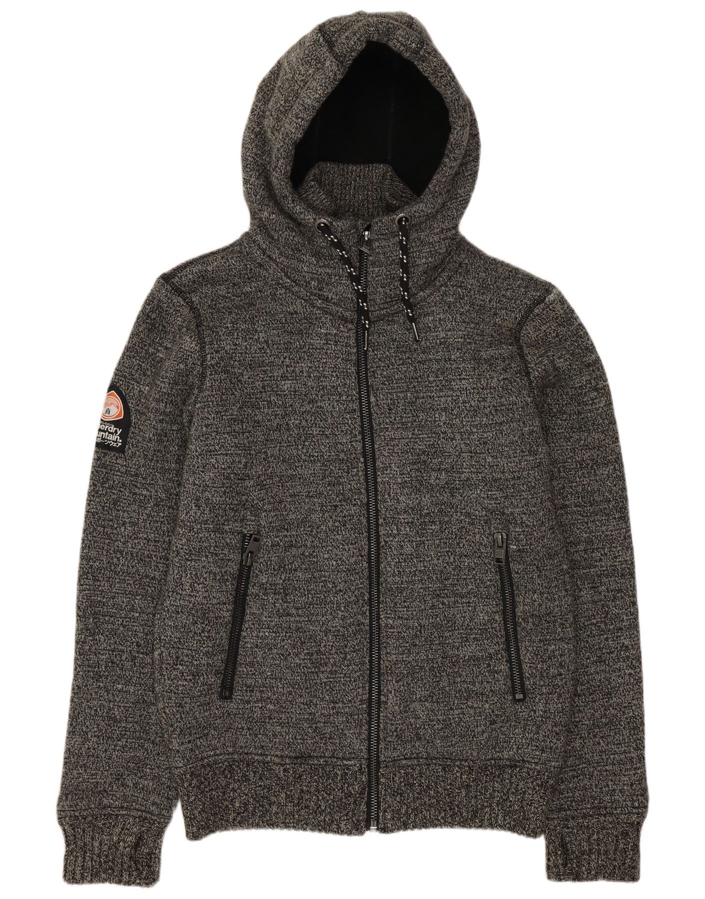 SUPERDRY Suéter tipo cárdigan con capucha y gráfico para hombre Acrílico moteado gris medio