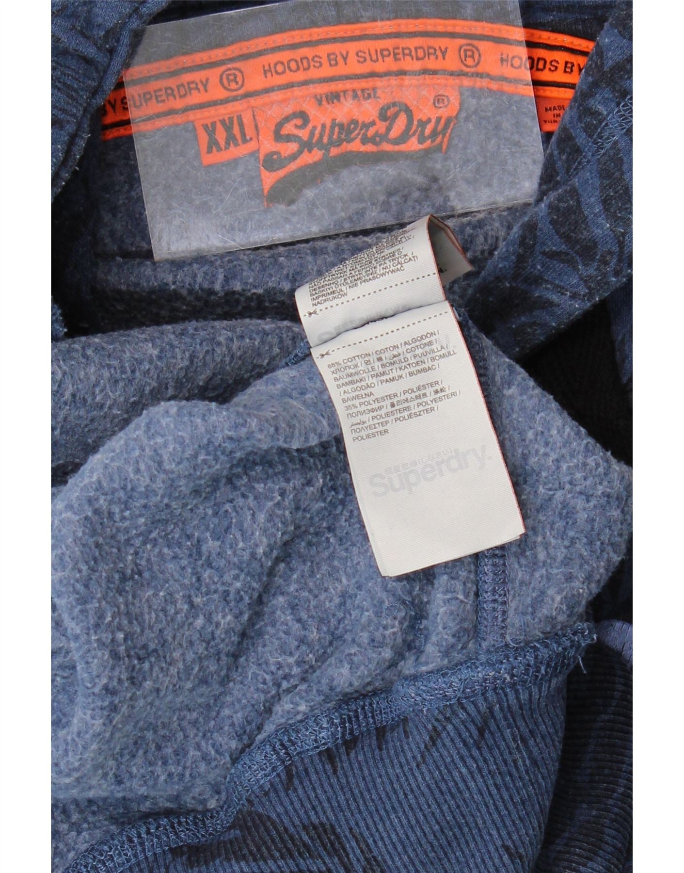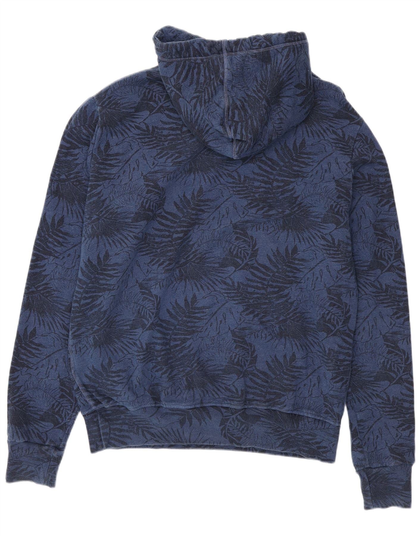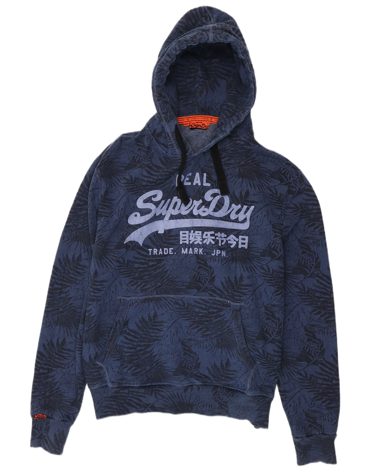 - AI Description: This Superdry mens hoodie jumper is crafted from a soft blue cotton blend fleece. It features a classic pullover design with a comfortable hooded neckline. Long sleeves and a regular fit ensure ease of wear. The garment includes practical pockets and is accented with a subtle logo. A distinctive floral pattern adds unique visual interest.