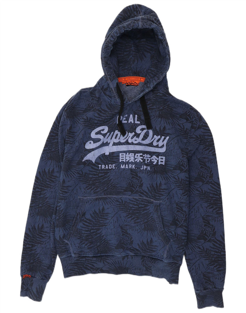SUPERDRY Mens Graphic Hoodie Jumper 2XL Navy Blue Floral Cotton