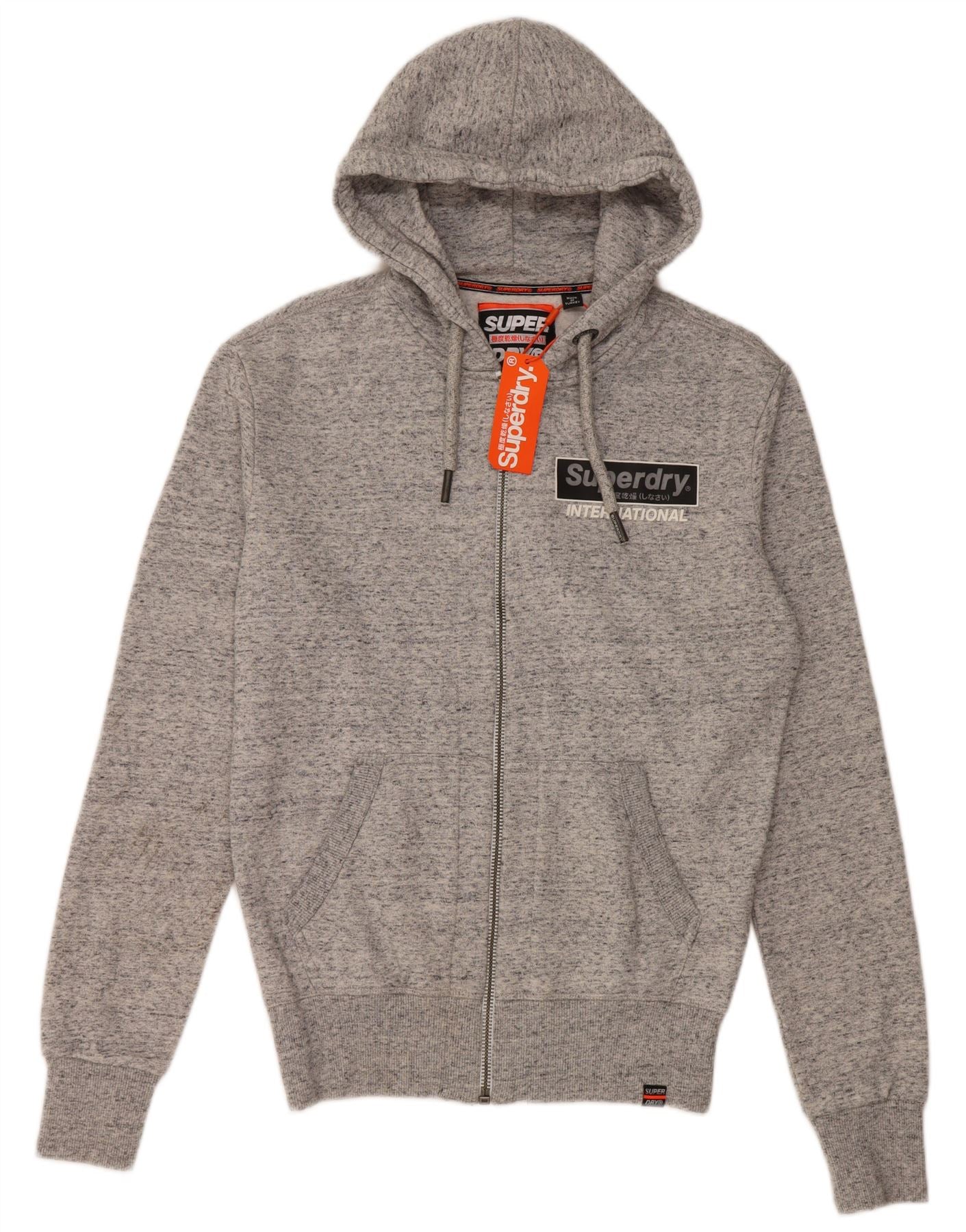 SUPERDRY Suéter con capucha y cremallera de ajuste holgado para hombre XS Algodón moteado gris