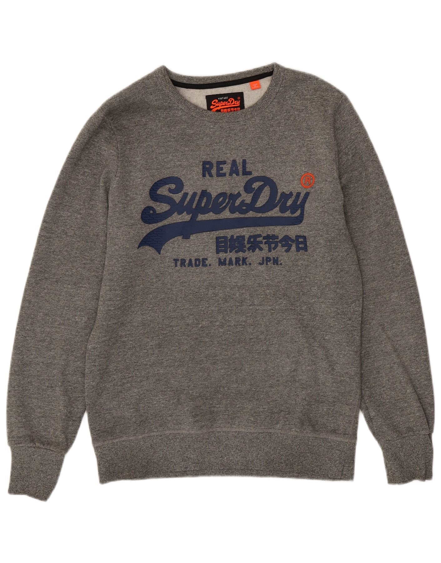SUPERDRY Hombre Sudadera con gráfico tipo jersey de algodón moteado gris grande