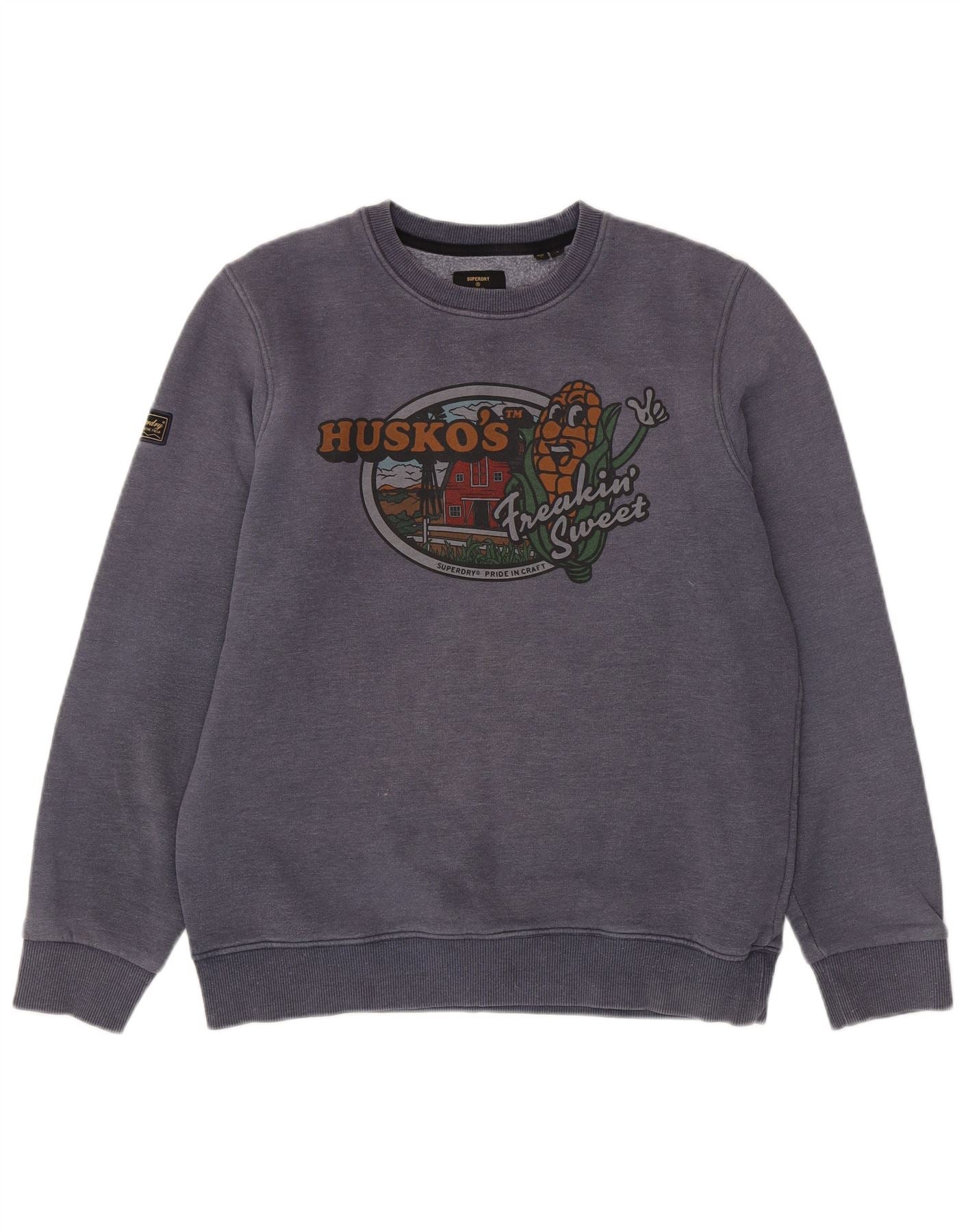 SUPERDRY Hombre Sudadera con gráfico Jumper Large Azul Marino Algodón