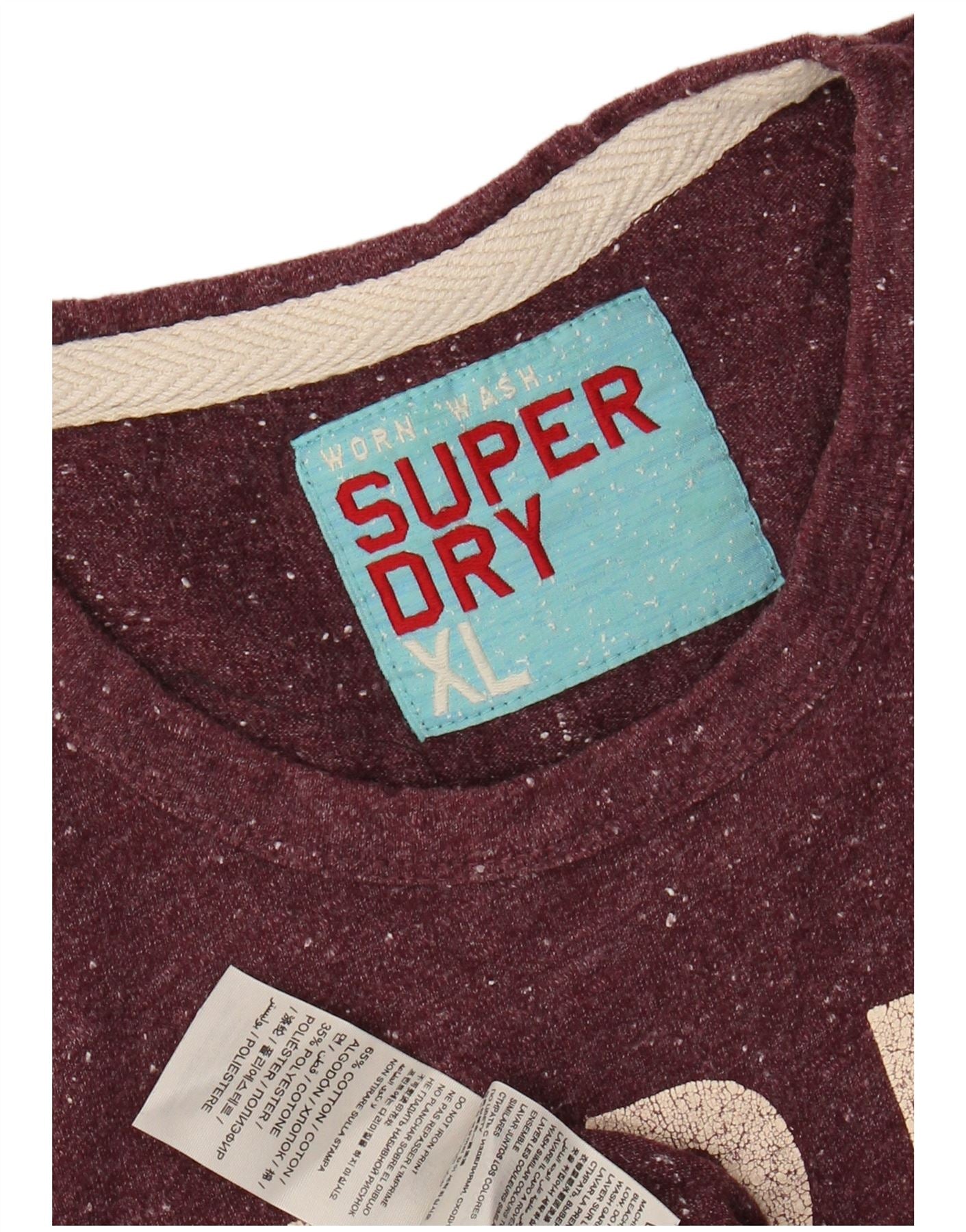 SUPERDRY Hombre Camiseta gráfica Top XL Algodón moteado burdeos