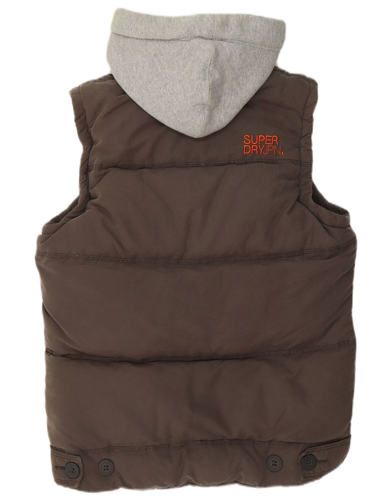 SUPERDRY Mens Hooded Padded Gilet UK 40 Large Grey Cotton