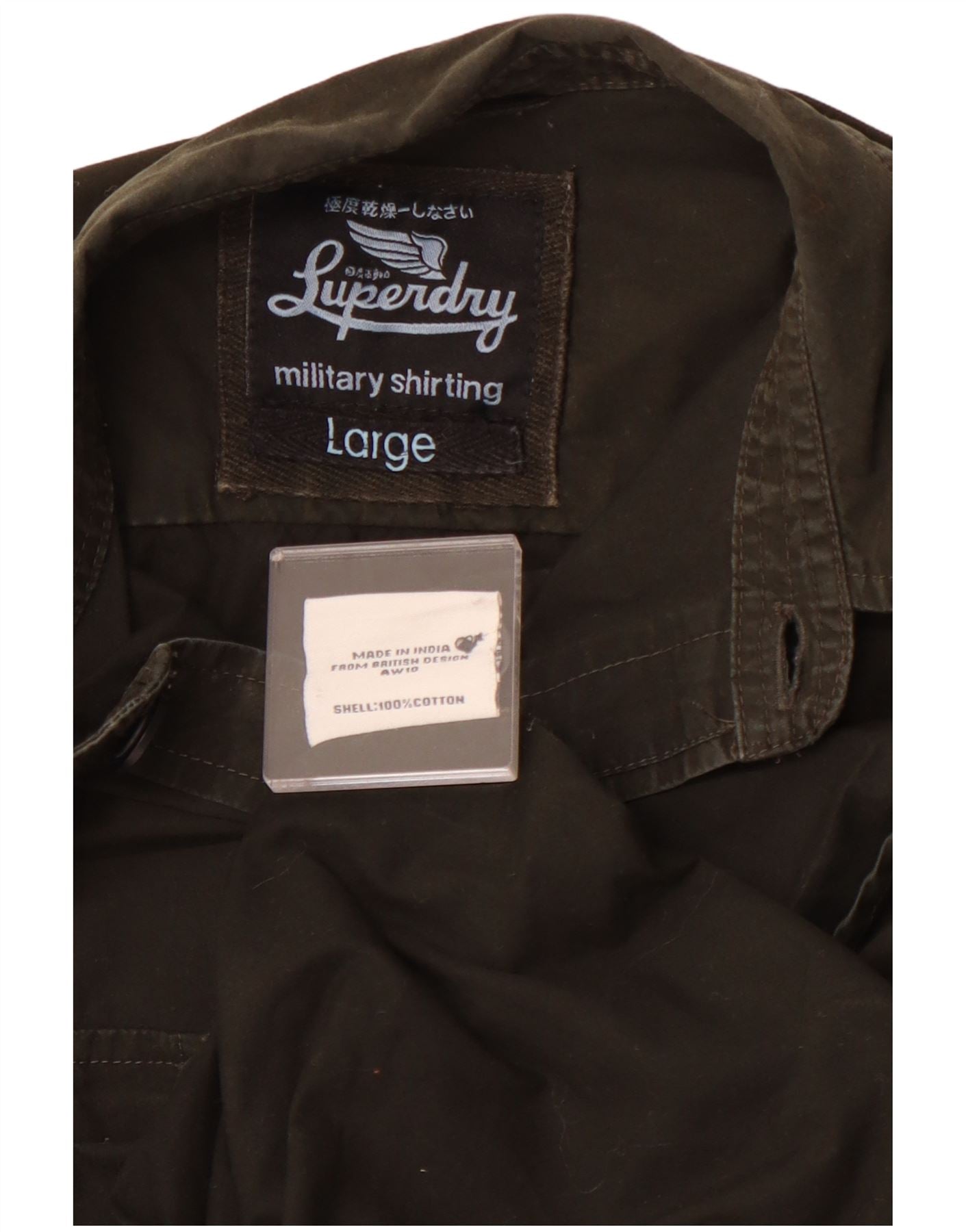 SUPERDRY Camisa militar para hombre Large Khaki Cotton
