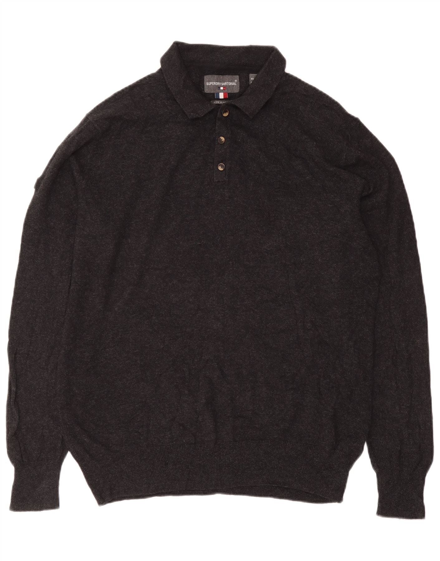 SUPERDRY Jersey con cuello tipo polo para hombre XL Gris Algodón