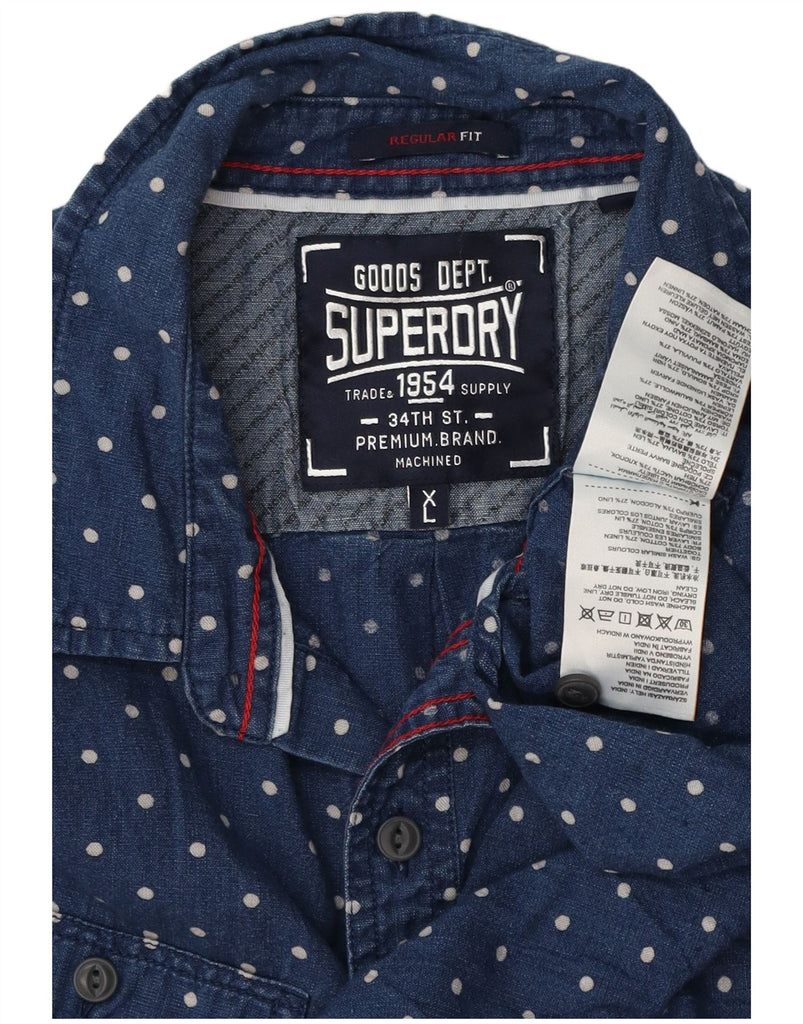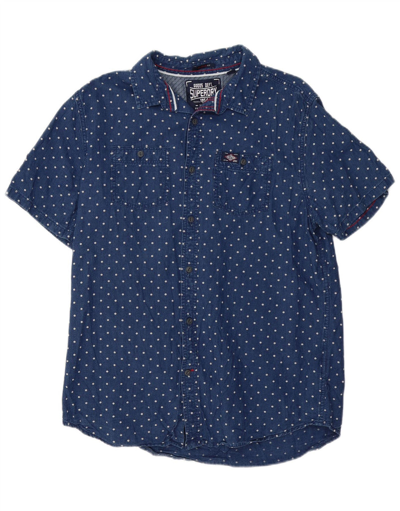 SUPERDRY Camisa Regular Fit De Manga Corta Para Hombre XL Algodón Moteado Azul