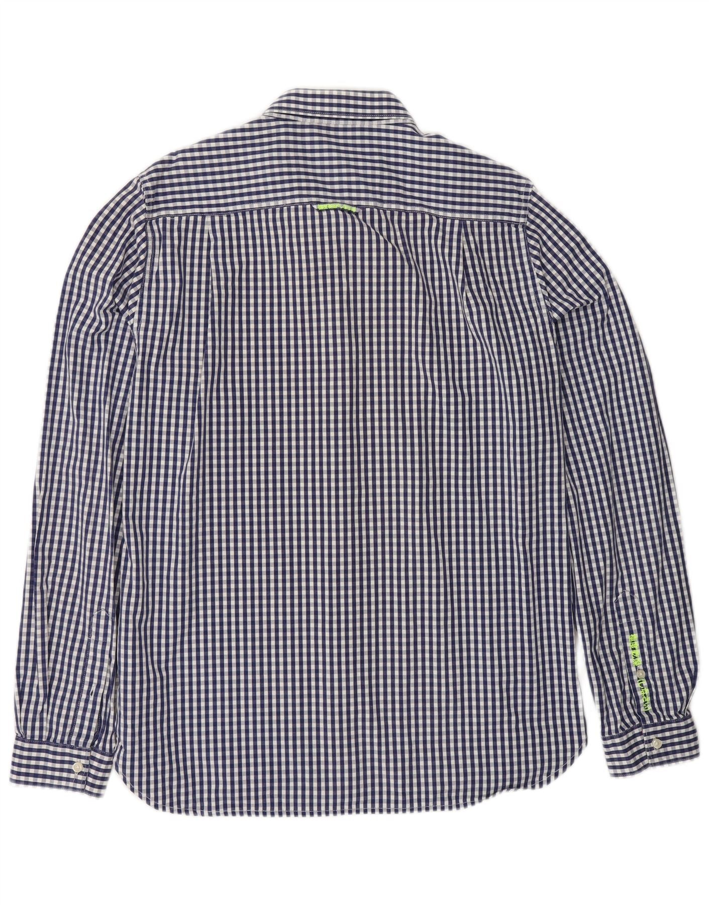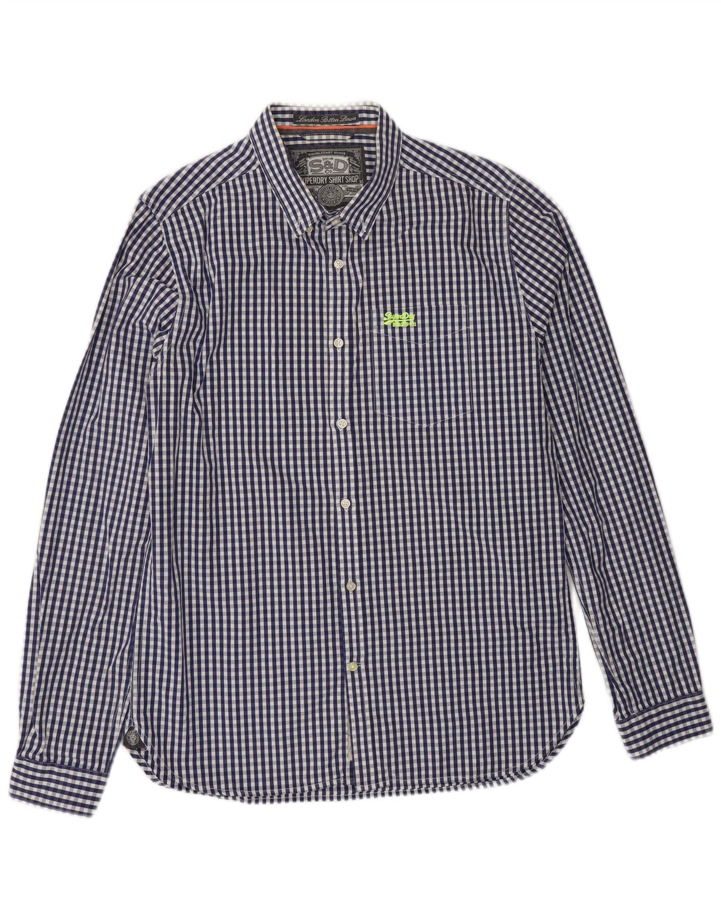 SUPERDRY Camisa para hombre grande de algodón a cuadros azul marino