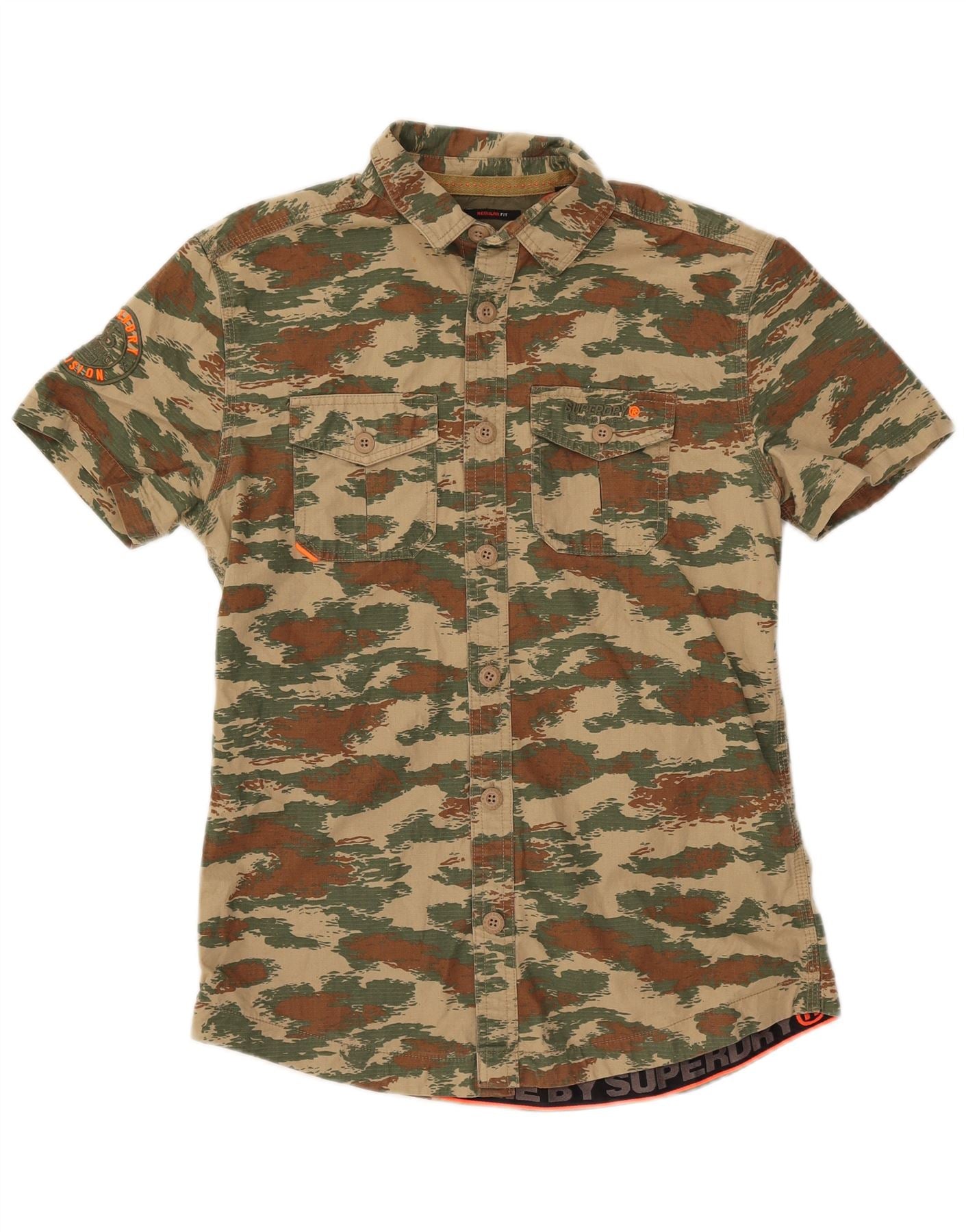 SUPERDRY Camisa Regular Fit De Manga Corta Para Hombre De Algodón Camuflaje Caqui Pequeño
