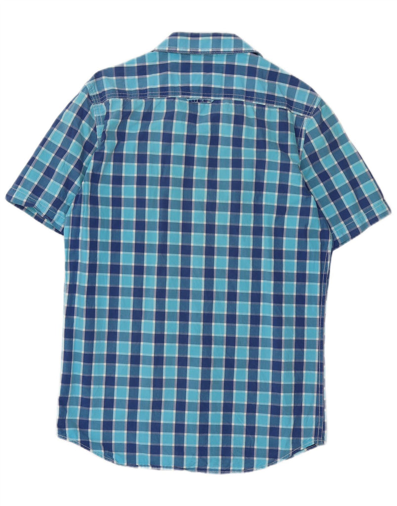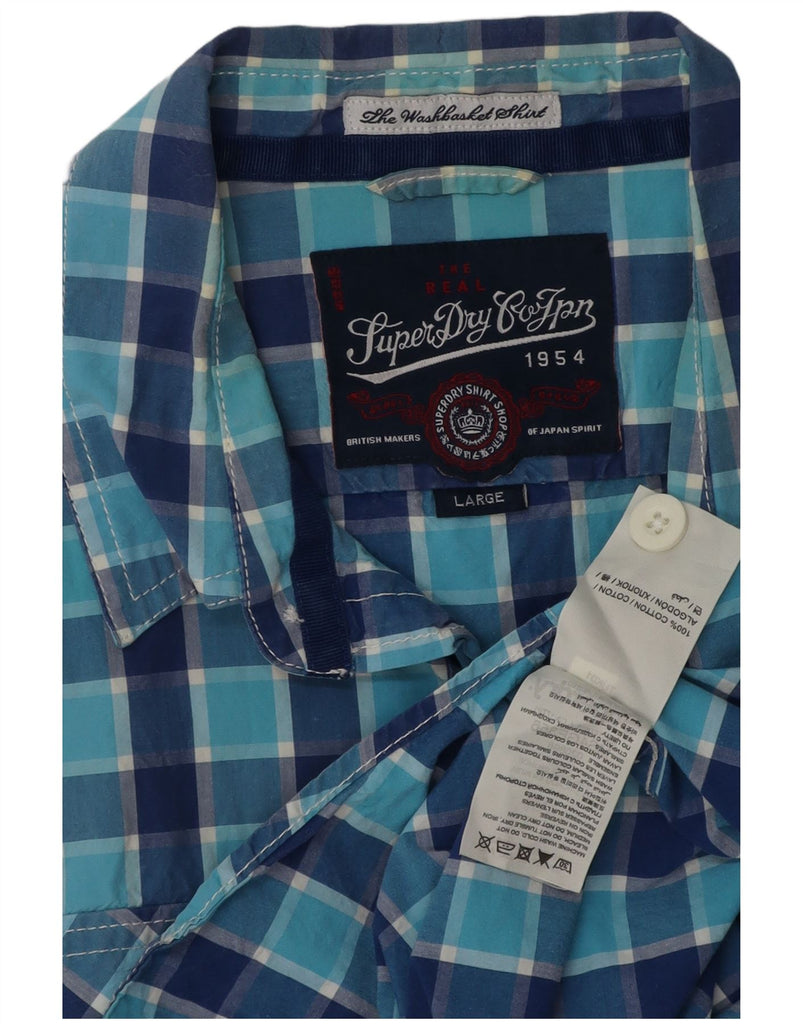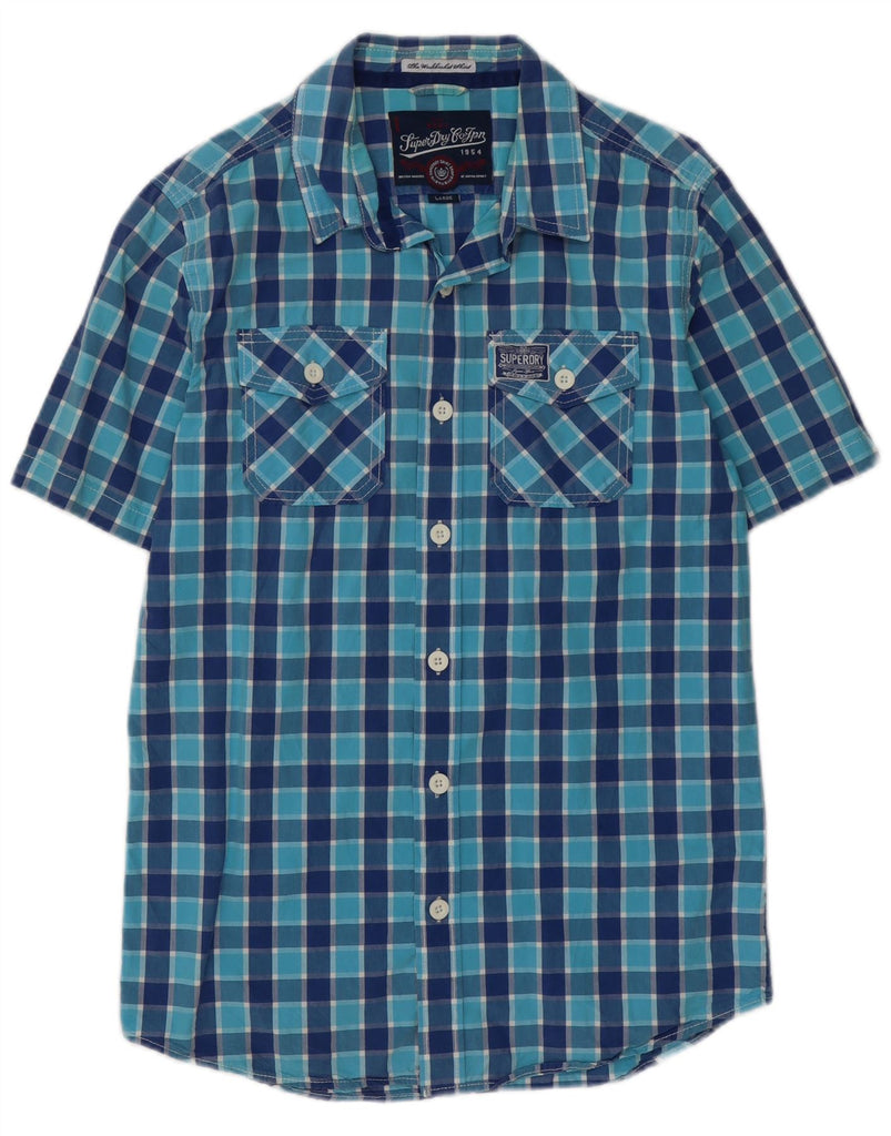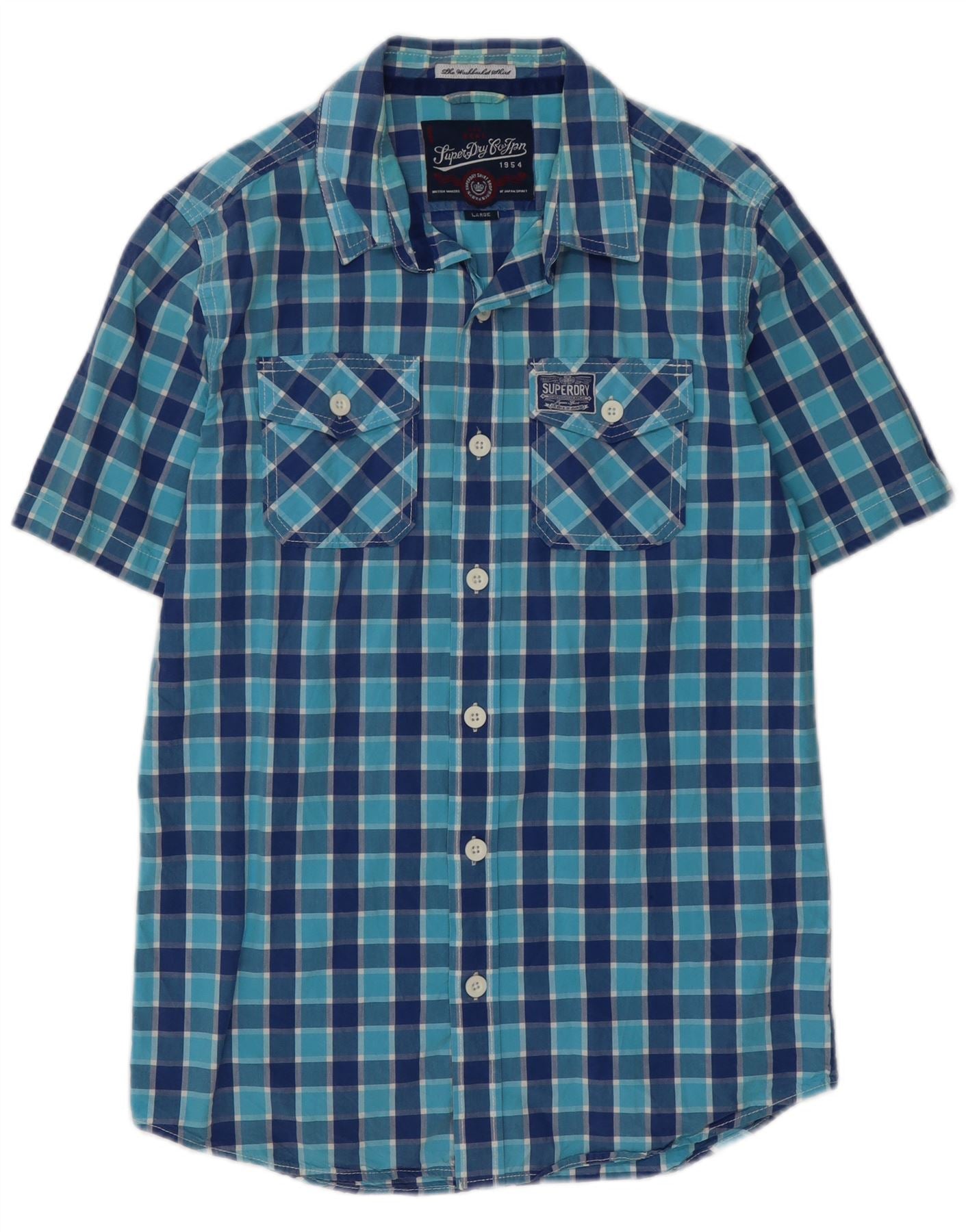 SUPERDRY Camisa de manga corta para hombre de algodón a cuadros azules grandes
