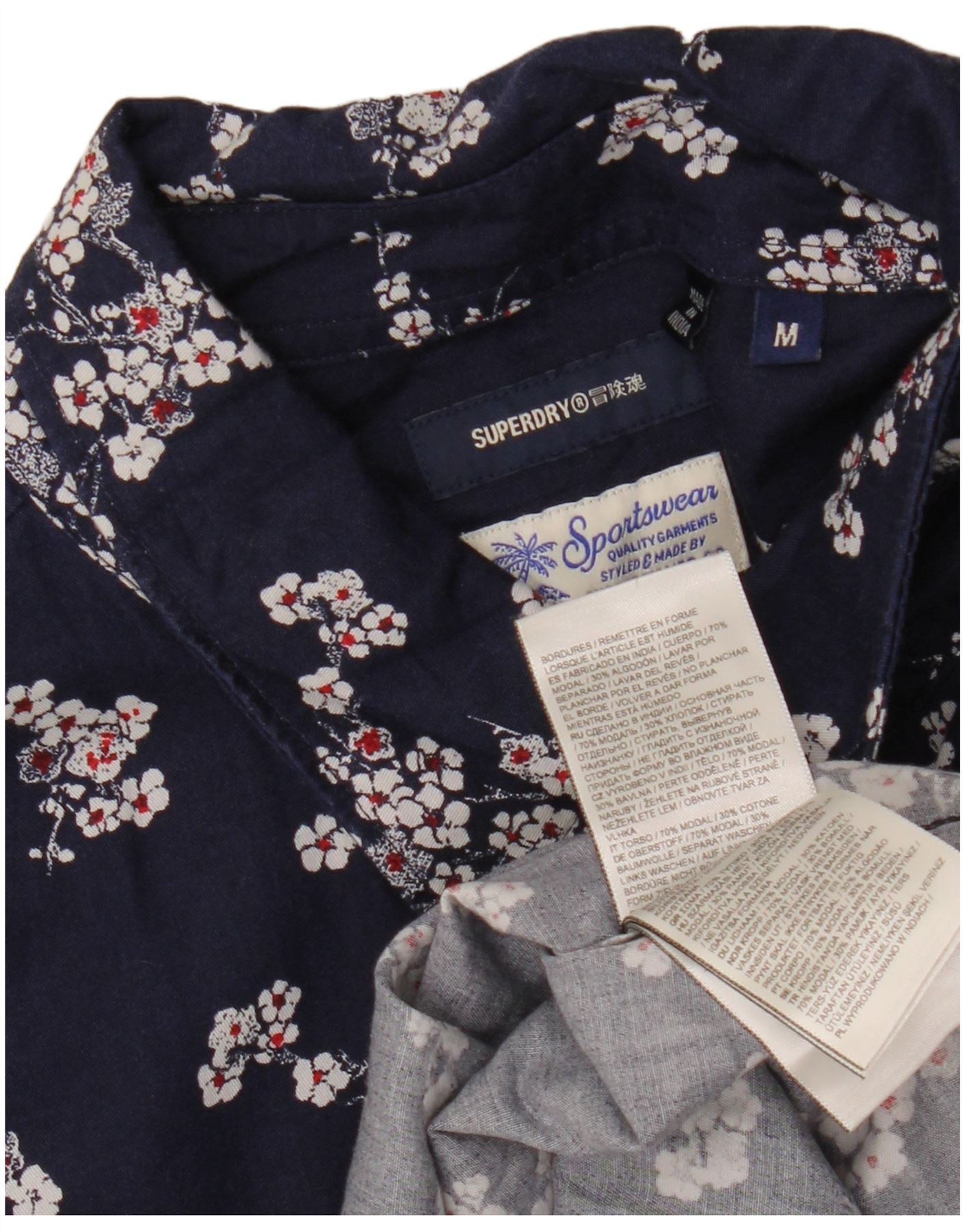 SUPERDRY Camisa de Manga Corta para Hombre Modal Floral Azul Marino Mediano