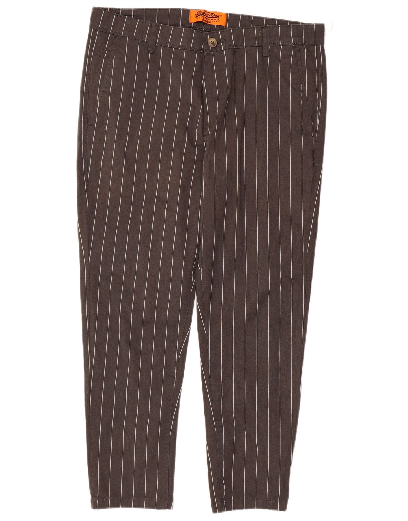 SUPERDRY Pantalones capri ajustados para hombre W34 L24 Algodón gris a rayas