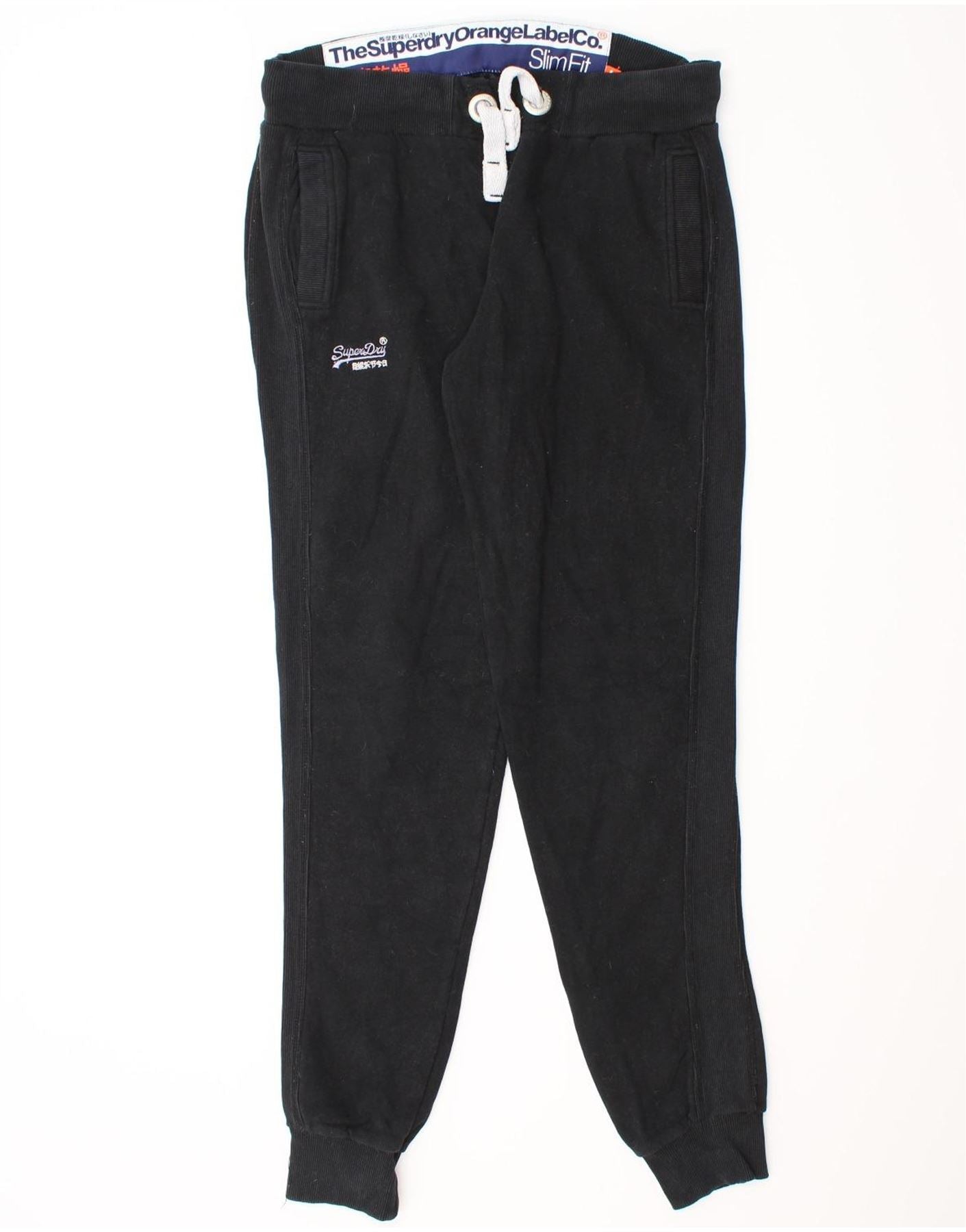 SUPERDRY Hombre Slim Fit Pantalones De Chándal Joggers Large Negro Algodón