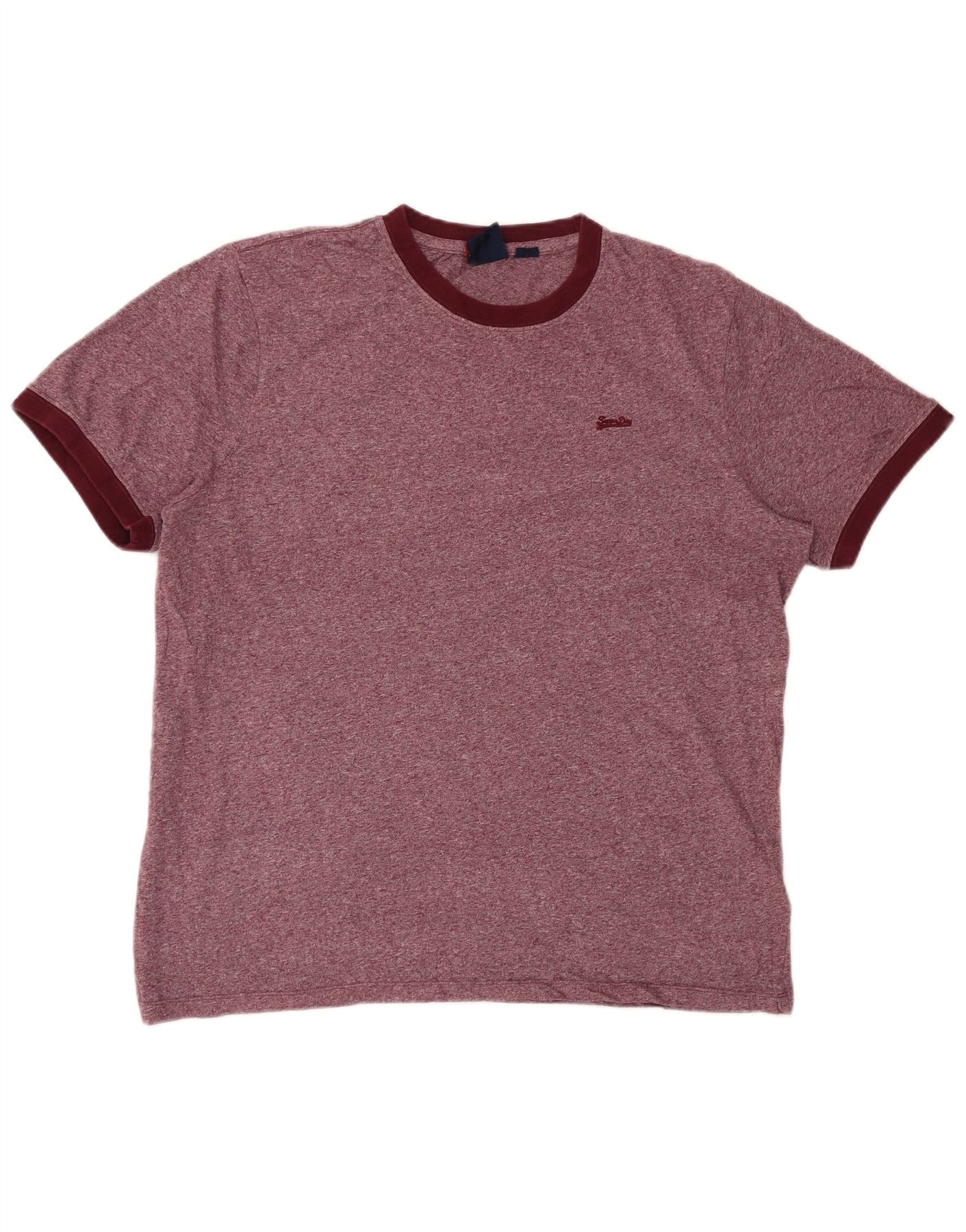 SUPERDRY Camiseta para hombre Top 2XL Algodón moteado burdeos