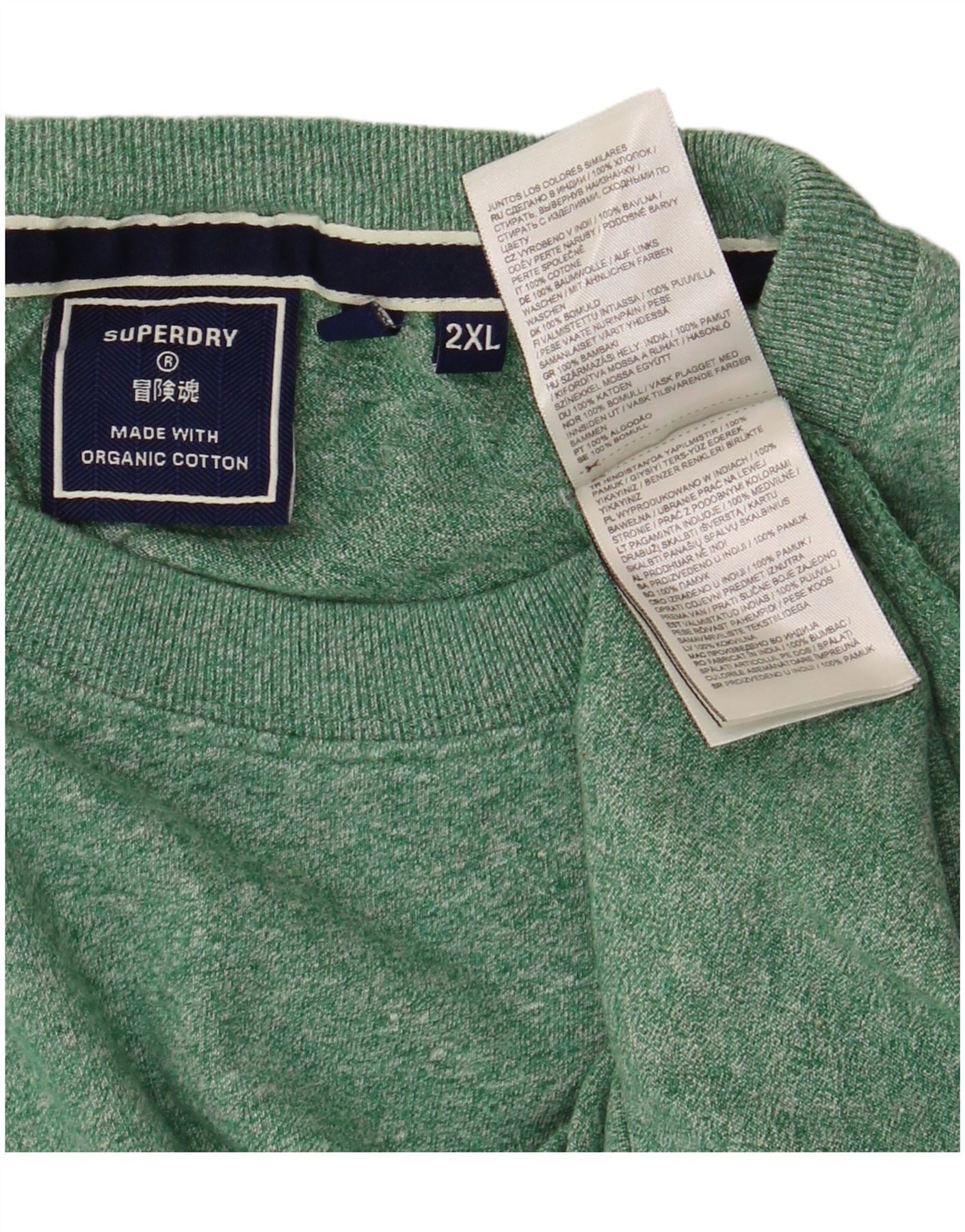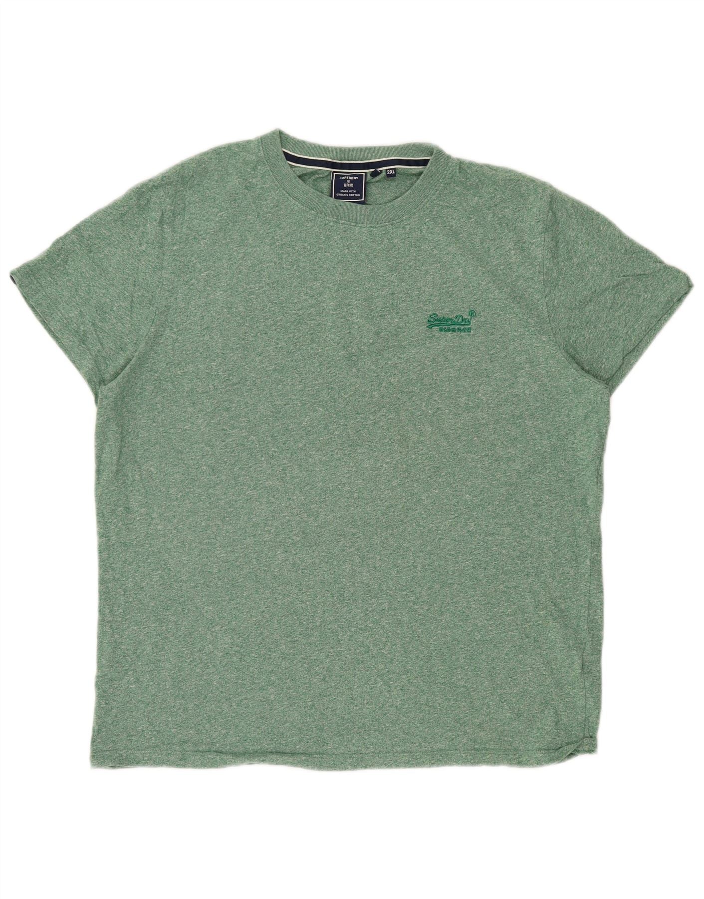 SUPERDRY Camiseta para hombre Top 2XL Algodón moteado verde