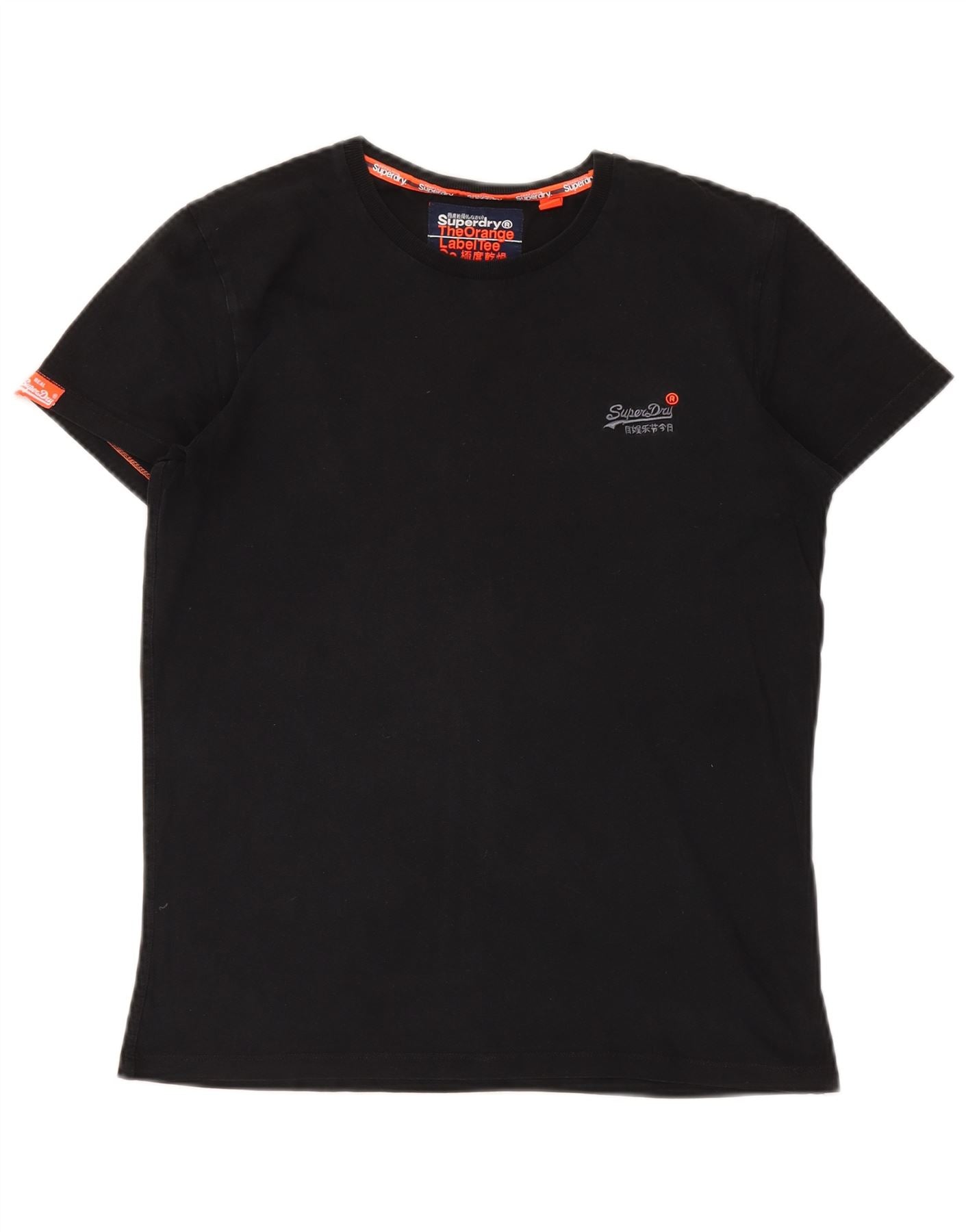 SUPERDRY Hombre Camiseta Top Medium Negro Algodón