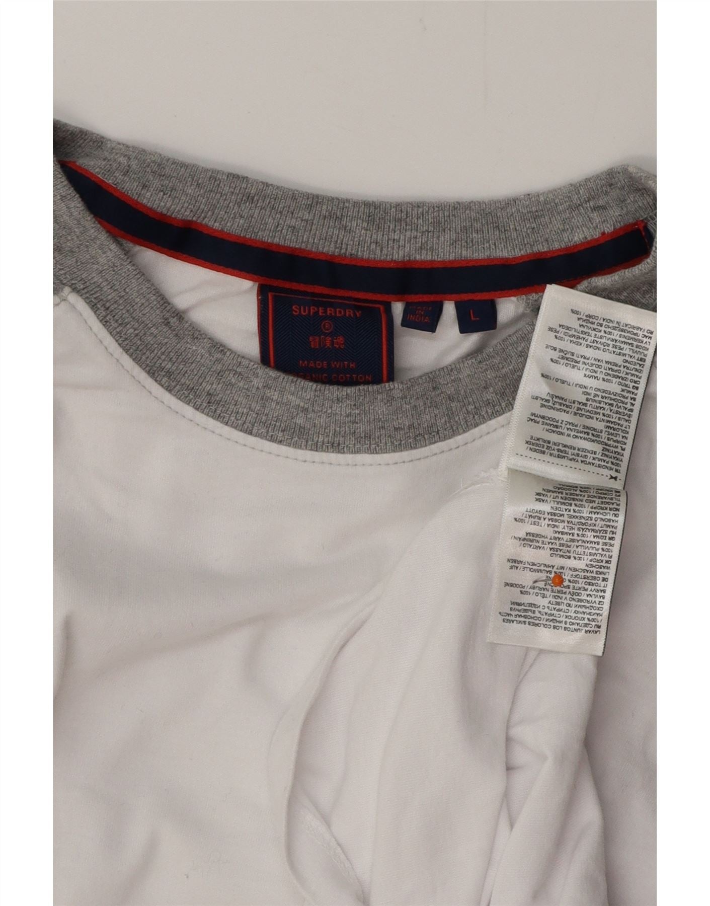 SUPERDRY Hombre Camiseta de manga larga de algodón color block blanco grande