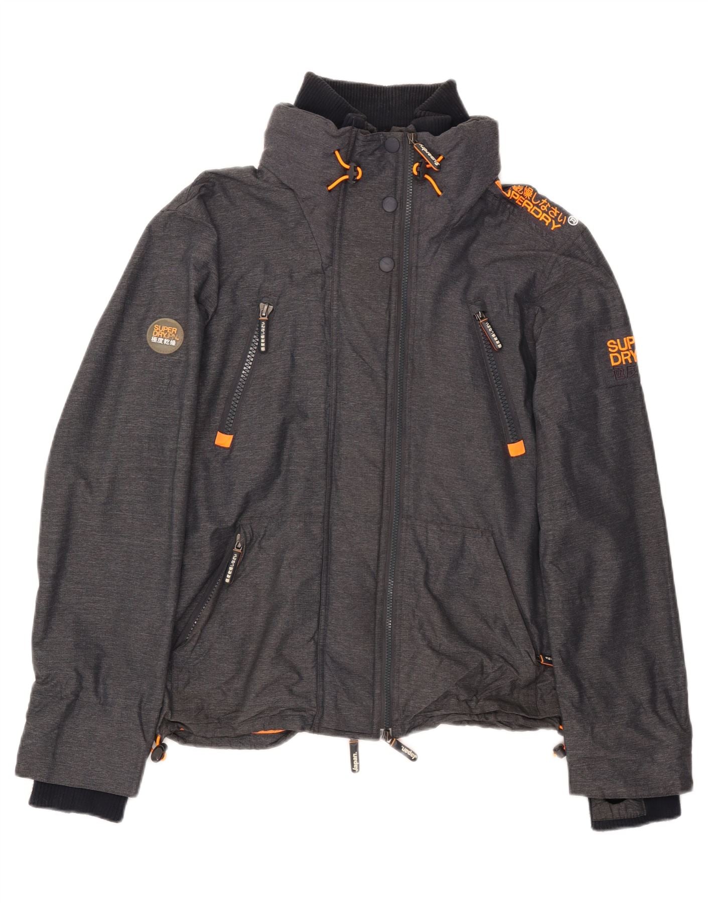- Descripción de IA: Esta chaqueta cortavientos de Superdry para hombre está confeccionada con poliéster tejido gris duradero y ofrece un acabado resistente al viento. Presenta cuello alto y manga larga con puños de canalé. El corte regular garantiza una gran comodidad. Un cierre de cremallera completo y múltiples bolsillos con cremallera brindan utilidad práctica. Los detalles en naranja brillante y la marca añaden un toque distintivo. La capucha oculta ofrece protección adicional.