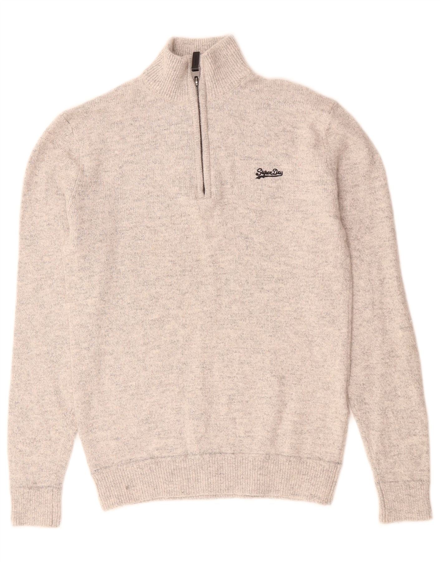 Superdry Jersey con cuello y cremallera para hombre, talla pequeña, algodón gris