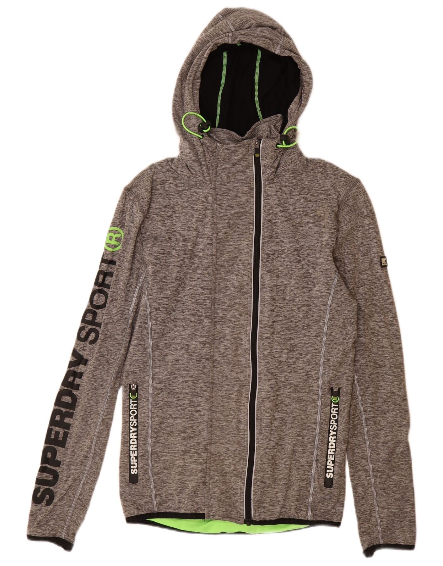 SUPERDRY Suéter con capucha y cremallera gráfica de ajuste atlético para mujer UK 40 Gris medio