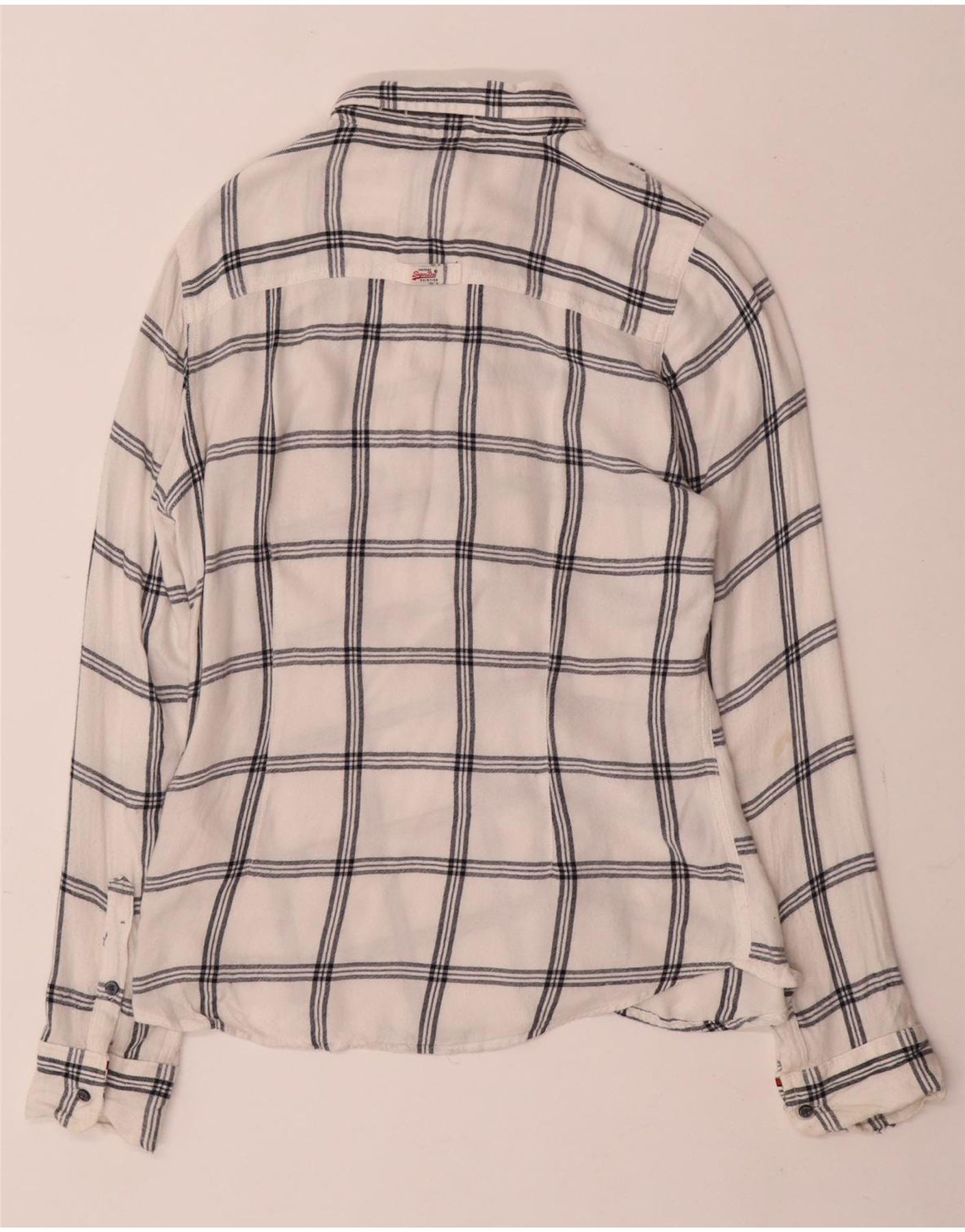 Superdry Camisa De Franela Boyfriend Para Mujer, Talla Mediana, Viscosa Blanca A Cuadros