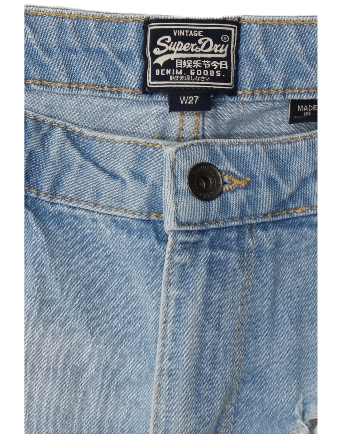 SUPERDRY Shorts vaqueros con estampado desgastado para mujer W27 Small Blue Cotton