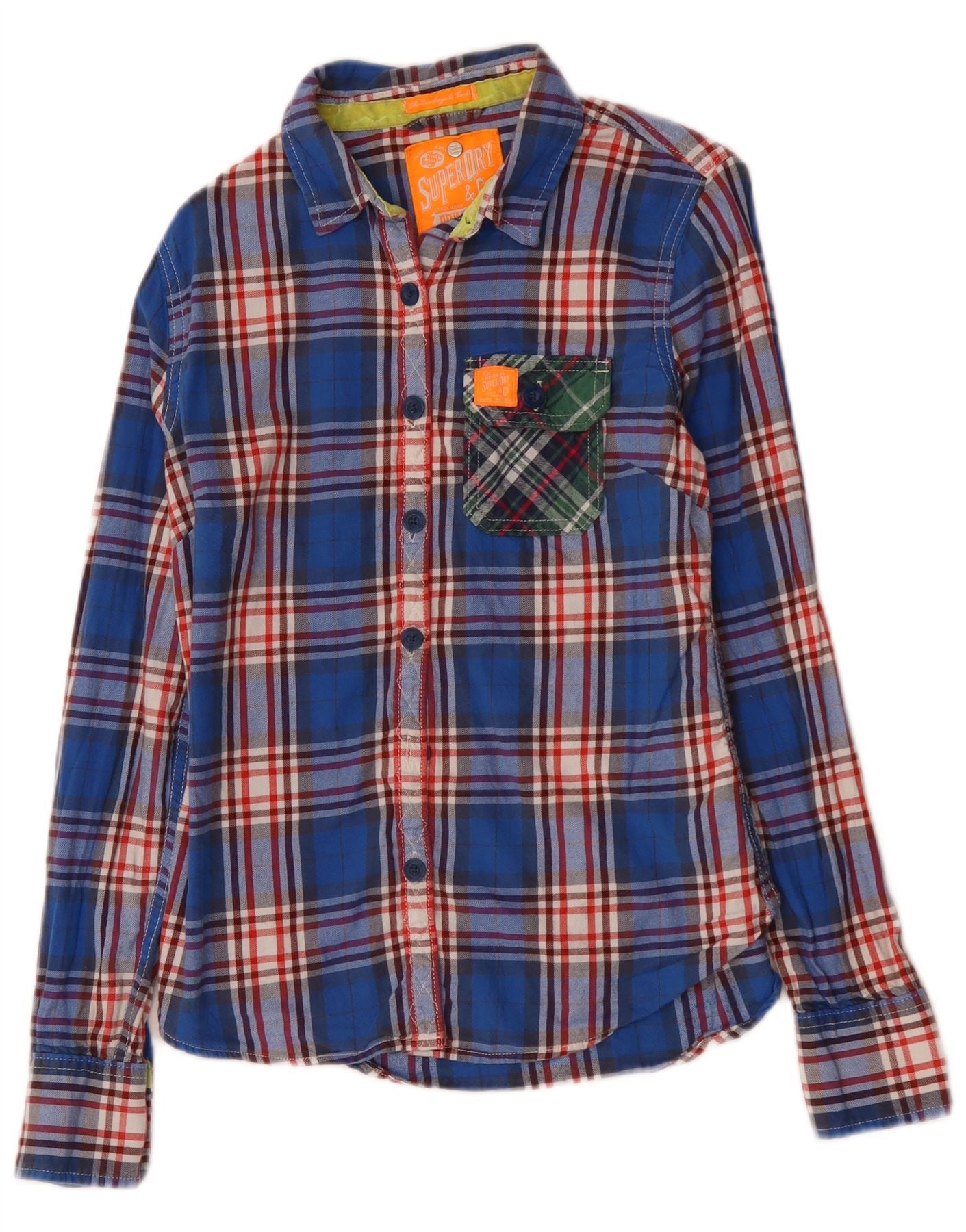 SUPERDRY Camisa de franela para mujer UK 40 Algodón a cuadros azul mediano