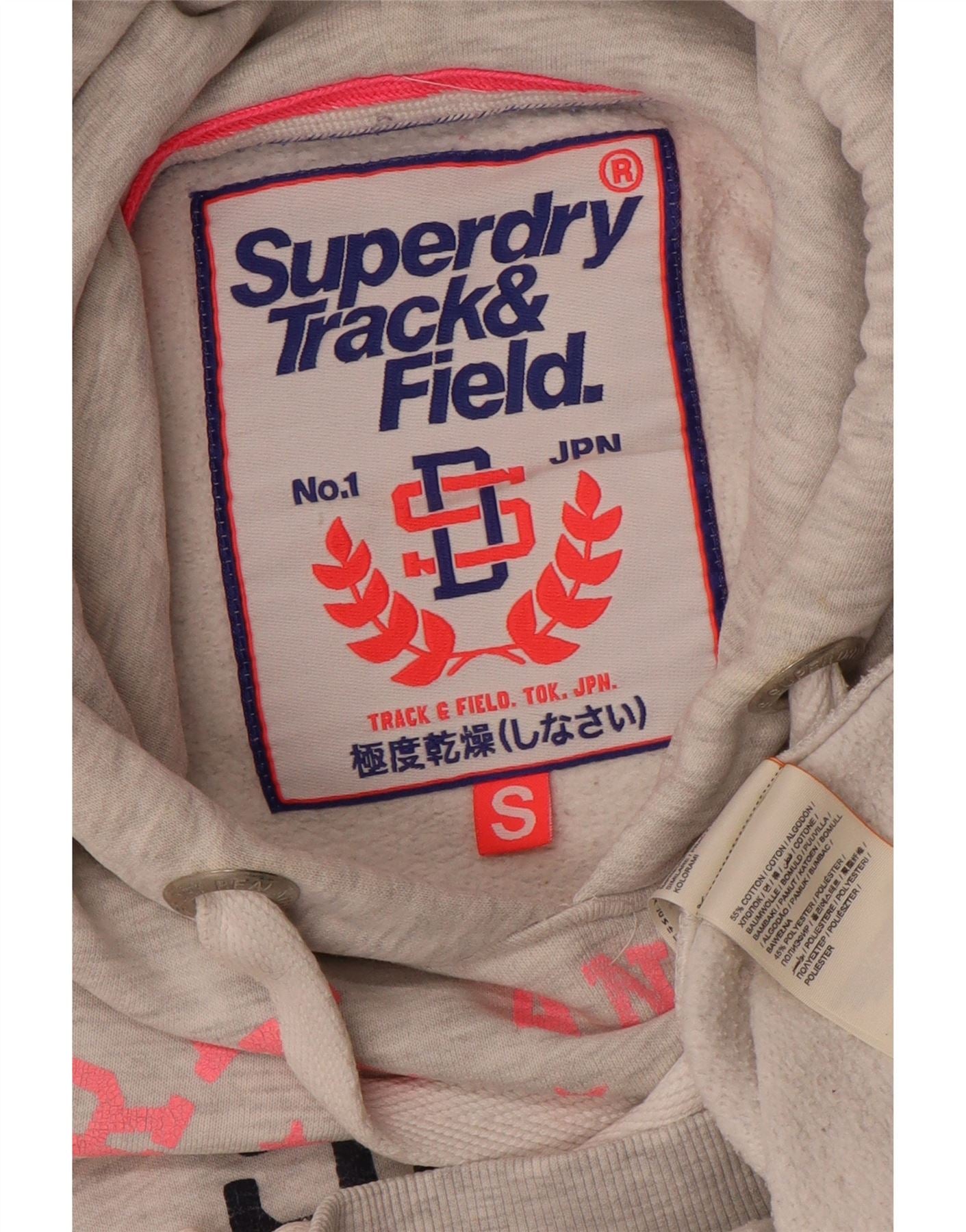 SUPERDRY Jersey con capucha gráfica para mujer UK 10 Small Grey Cotton